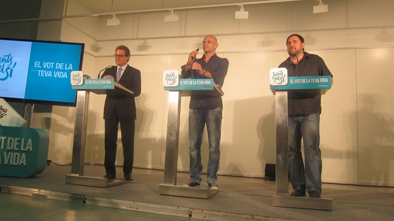 El presidente de la Generalitat, Artur Mas (izda.), en una rueda de prensa. 21 de septiembre de 2015.