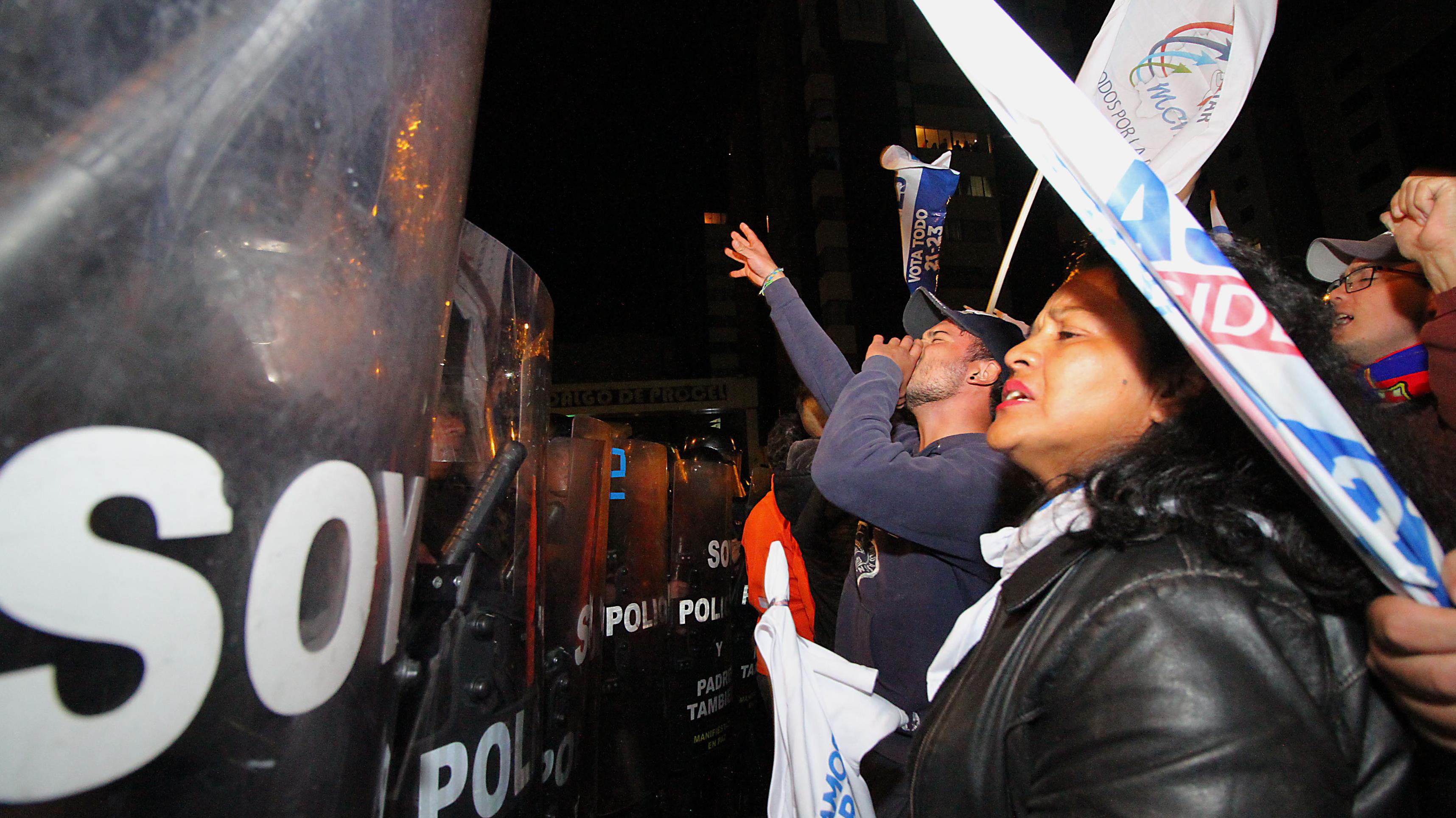Medios locales reportan que un policía ha resultado herido en los incidentes habidos ante el Consejo Nacional Electoral en la ciudad de Guayaquil, en el suroeste del país.