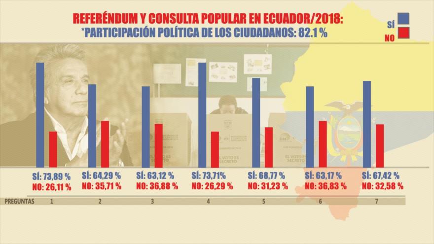 La pregunta 3 de la consulta, que plantea una reestructuración del CPCCS, recibió un 63,08 % de apoyo en la consulta, según el órgano electoral.