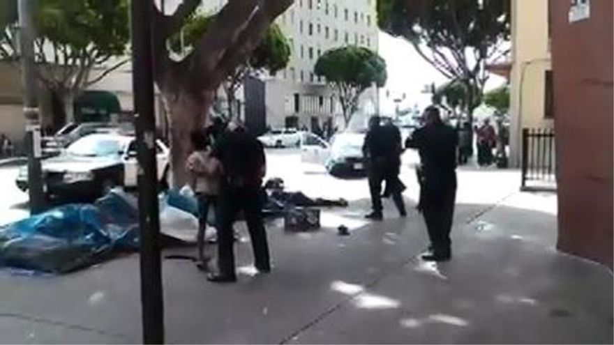 El video muestra el altercado entre un sintecho y varios agentes de policía en el barrio de Skid Row, situado en las inmediaciones del centro de Los Ángeles, y cómo los policías disparan al indigente provocándole la muerte.