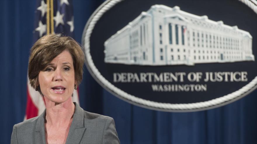 La fiscal general en funciones, Sally Yates, fue despedida por desobedecer la orden ejecutiva del mandatario estadounidense emitida el viernes que impide la entrada de ciudadanos procedentes de Irán, Irak, Siria, Yemen, Sudán, Libia y Somalia a Estados Unidos por un periodo de 90 días, y el ingreso de solicitantes de asilo en cuatro meses.