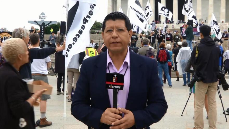 Excombatientes y activistas contra la guerra, marcharon y protestaron contra las intenciones de Donald Trump de perpetuar el militarismo y las guerras estadounidenses a través de un presupuesto presentado al Congreso, en el cual incrementa en cincuenta y cuatro mil millones de dólares el presupuesto militar.