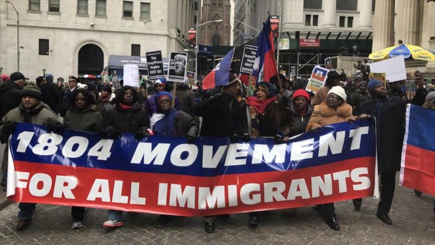 Durante la marcha desde Brooklyn hasta el Bajo Manhattan en repudio a la palabra vulgar utilizada por Trump, los congregados ondeaban banderas haitianas y coreaban consignas como “Donald Trump, racista”.