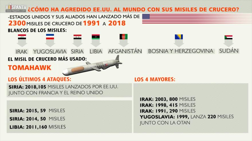 En la siguiente infografía les presentamos información sobre los casos en que Estados Unidos ha empleado sus misiles de crucero, según el portal de estadísticas Statista, y dicha información muestra que Irak fue el primer país bombardeado por EE.UU., con más de 1600 misiles.