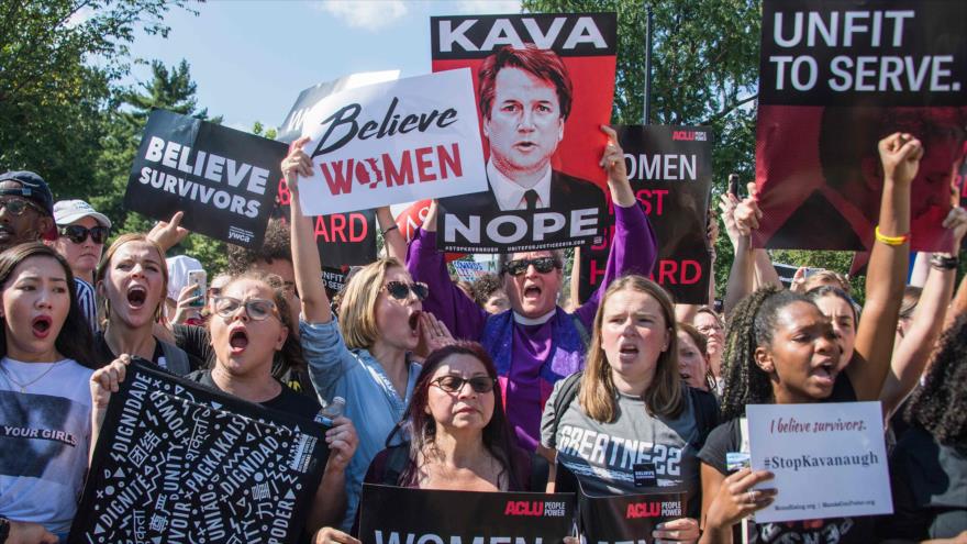 Congregados en el Capitolio y frente a la Corte Suprema, los activistas pidieron a los senadores que cancelen la nominación de Kavanaugh, a quien califican de violador y una amenaza para la democracia del país.