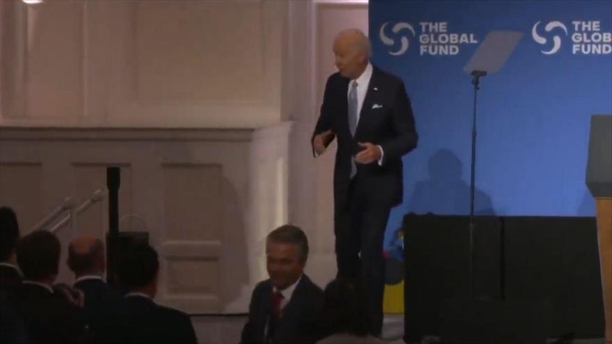 Tal como se ve en una grabación, divulgada en redes sociales, Biden no sabe hacia dónde dirigirse. Por momentos quiere regresar al escenario, pero se quedó inmóvil, volteando hacia varios lados sin directriz alguna, hasta que finalmente se muestra decidido a abandonarlo.