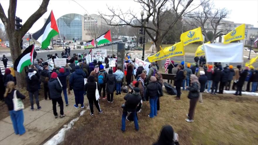 Junta de la Paz, Instituto de la Paz. Estos activistas se congregan en el corazón de Washington ante uno de los últimos organismos secuestrados por el régimen de Donald Trump.