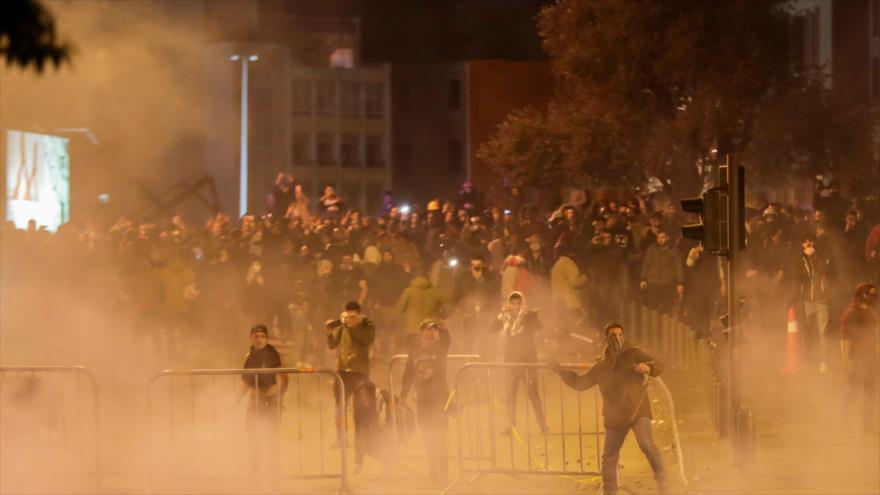 Los enfrentamientos del sábado, los más violentos desde el inicio de las protestas en octubre, empezaron en una calle que conduce al Parlamento: los manifestantes intentaban cruzar las barricadas de hierro y la Policía los reprimió lanzando gases lacrimógenos y balas de caucho.