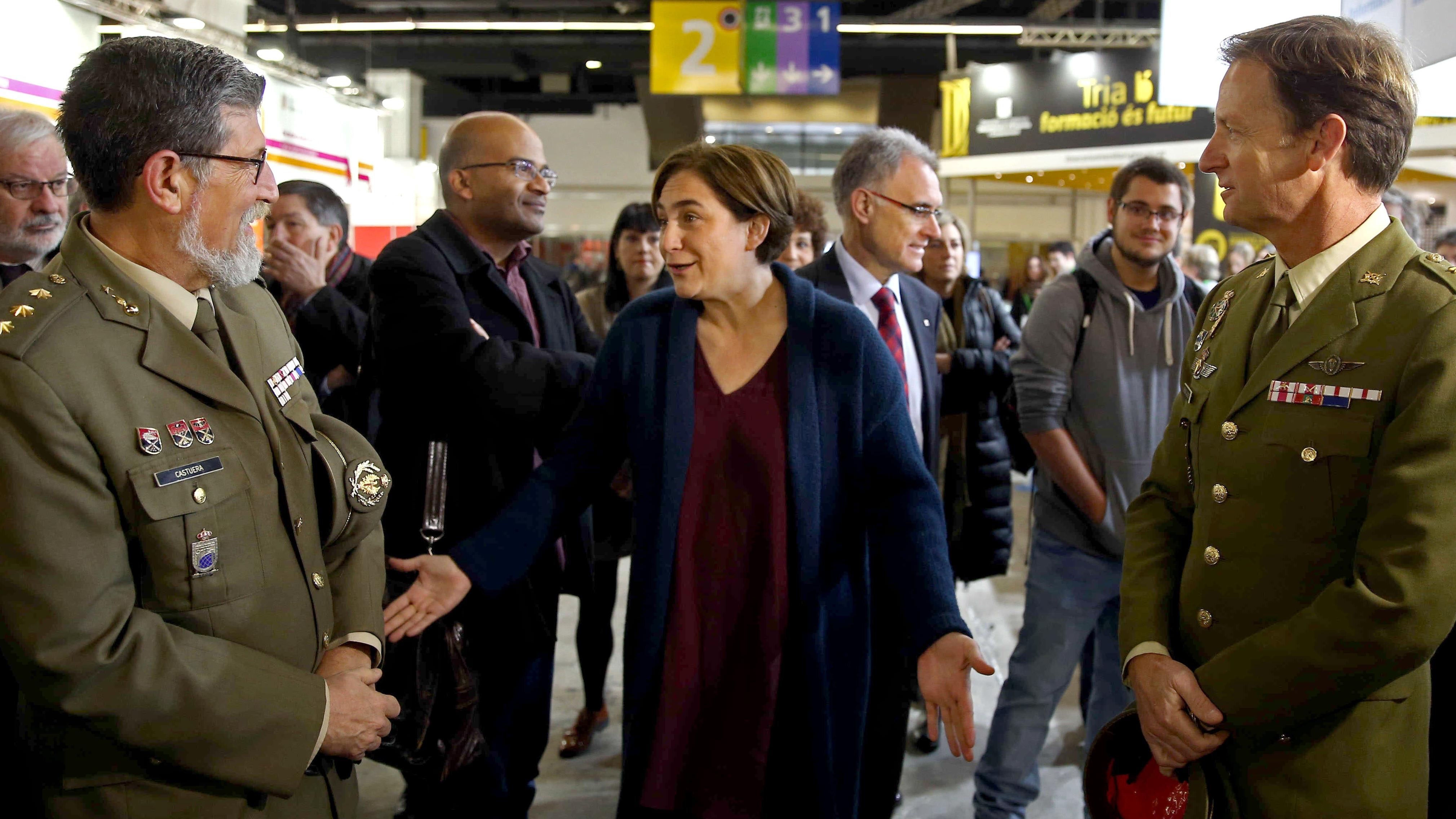 La alcaldesa, de la coalición Barcelona en Comú (aliado regional de Podemos), les dijo a dos militares que no son bienvenidos en el Salón de la Enseñanza, feria educativa, no obstante, todo esto ocurrió en un ámbito cordial y los militares afirmaron que respetaban las palabras de la alcaldesa y optaron por retirarse.