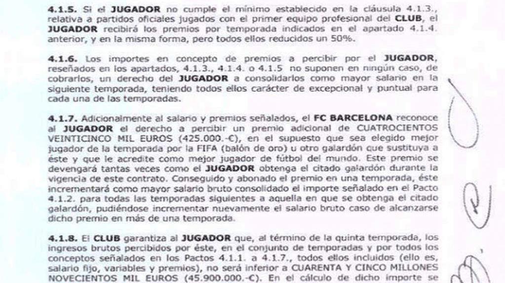 Según el contrato filtrado por la web, si el jugador no hubiera alcanzado esos 45,9 millones de euros en 2018, entre salario y distintos bonus, el club debería cubrir la cifra que faltara hasta llegar a ese mínimo.