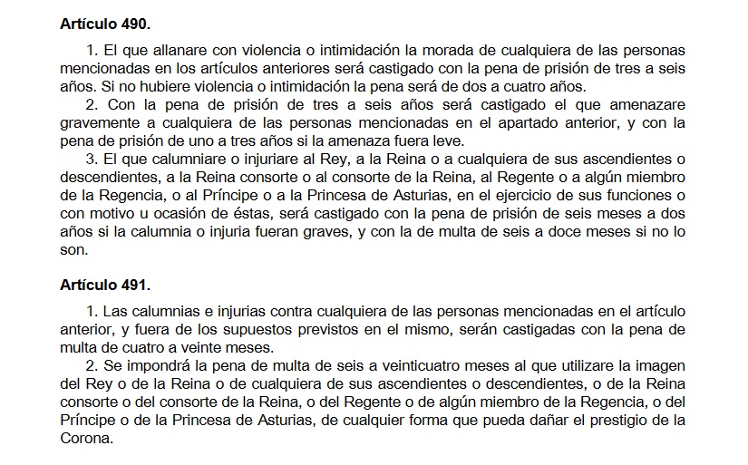 El juicio se celebrará el próximo martes ante el Juzgado Central de lo Penal de la Audiencia Nacional. Es de mencionar que el delito de calumnias o injurias a los miembros de la Casa Real de España están penados con hasta dos años de prisión en el Código Penal de este país.