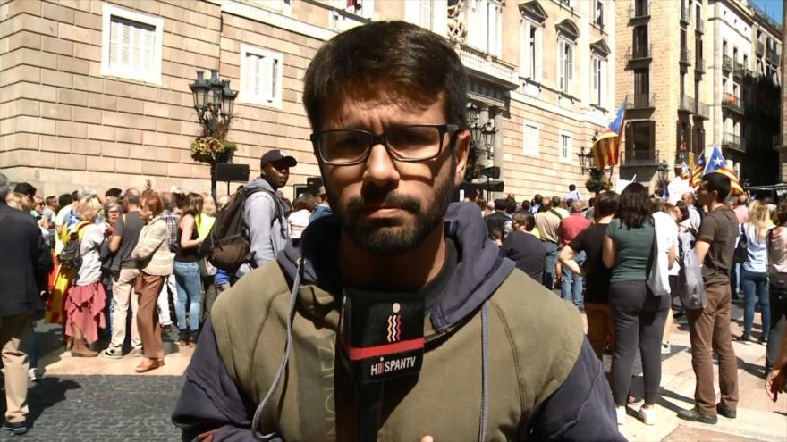 Los representantes políticos, junto a miles de ciudadanos, se han manifestado en la plaza Sant Jaume de Barcelona, símbolo del poder político catalán, para demostrar que no tienen miedo a las represalias del Estado.