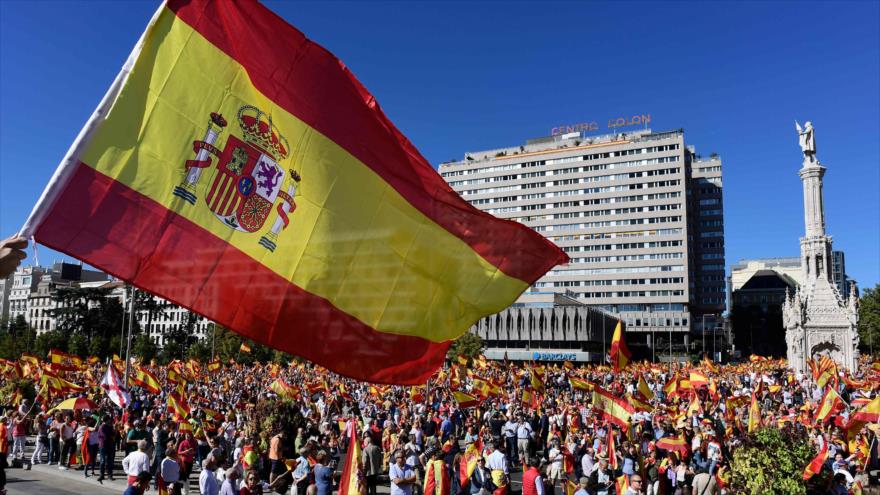 En la plaza de Colón en Madrid, la capital, se han reunido este sábado una multitud con banderas españolas a favor de la unidad de España, en reacción al desafío soberanista organizado el 1 de octubre, por la comunidad autónoma de Cataluña (noreste).