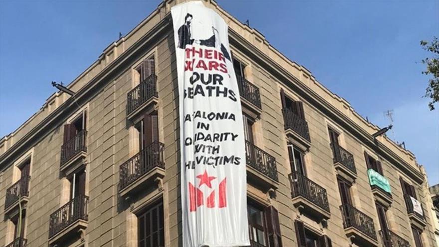 En otro gesto de protesta contra la monarquía española, varios miembros de los Comités de Defensa de la República (CDR), junto con activistas catalanes, han asistido con pancartas con lemas como “sus negocios, nuestros muertos” y “Felipe, quien quiere la paz no trafica con armas”.