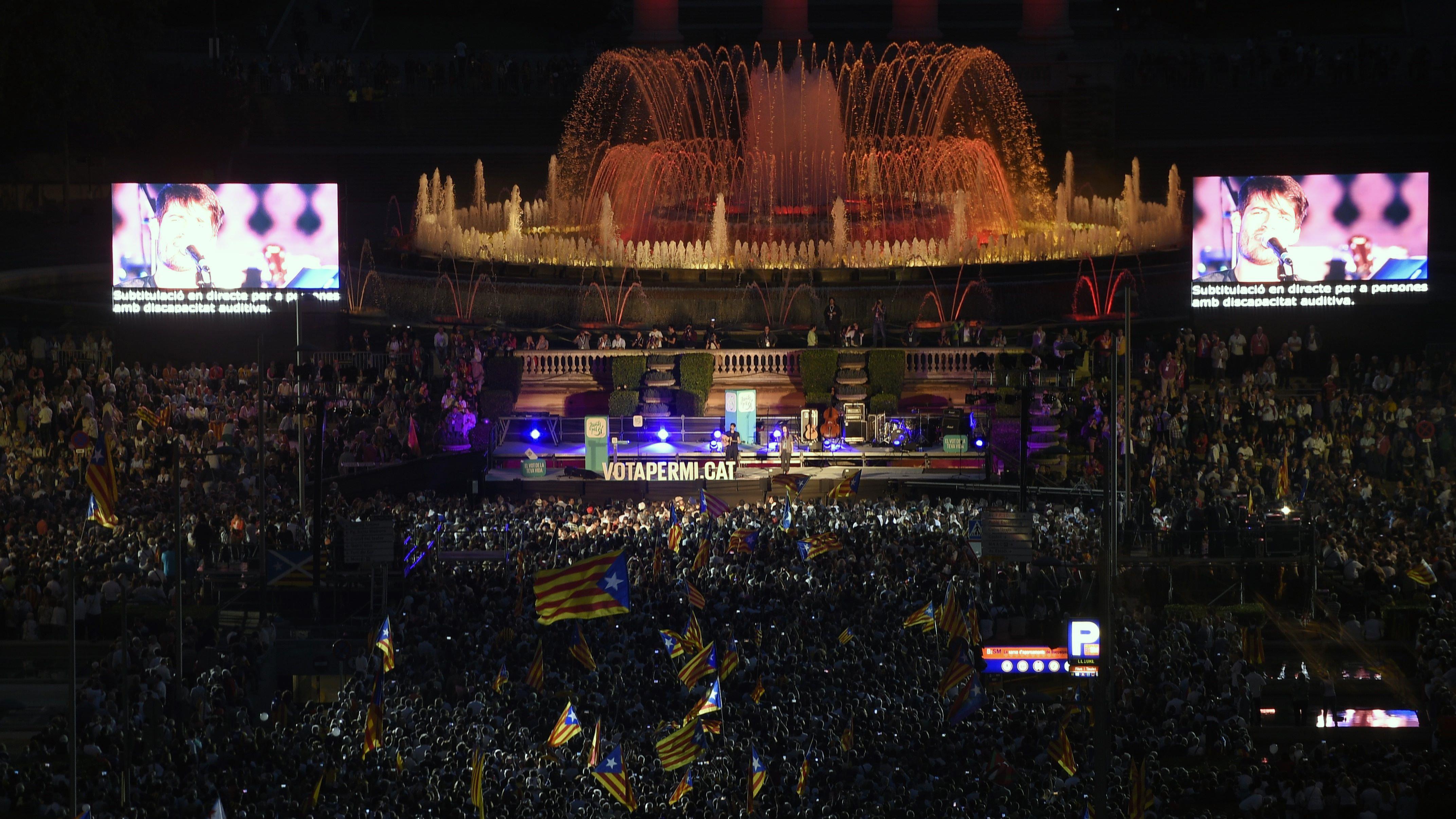 Mitin final de la candidatura electoral unitaria a favor de la independencia de Cataluña, Juntos por el Sí, en Barcelona, 25 de septiembre de 2015.