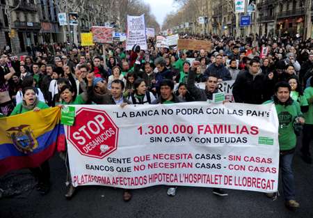 Los españoles, convocados por la Plataforma de Afectados por la Hipoteca (PAH) reivindicaron el derecho a la vivienda y la dación en pago con efectos retroactivos, además del fin de los desahucios a través de aprobación de la Iniciativa Legislativa Popular (ILP).
