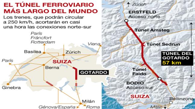 El inmenso túnel, que ha necesitado 17 años de obras, entrará realmente en funcionamiento en diciembre. Constituirá la pieza clave de la nueva línea ferroviaria que cruzará los Alpes (NEAT), permitiendo crear un nuevo mapa de comunicaciones en el eje norte-sur de Europa.