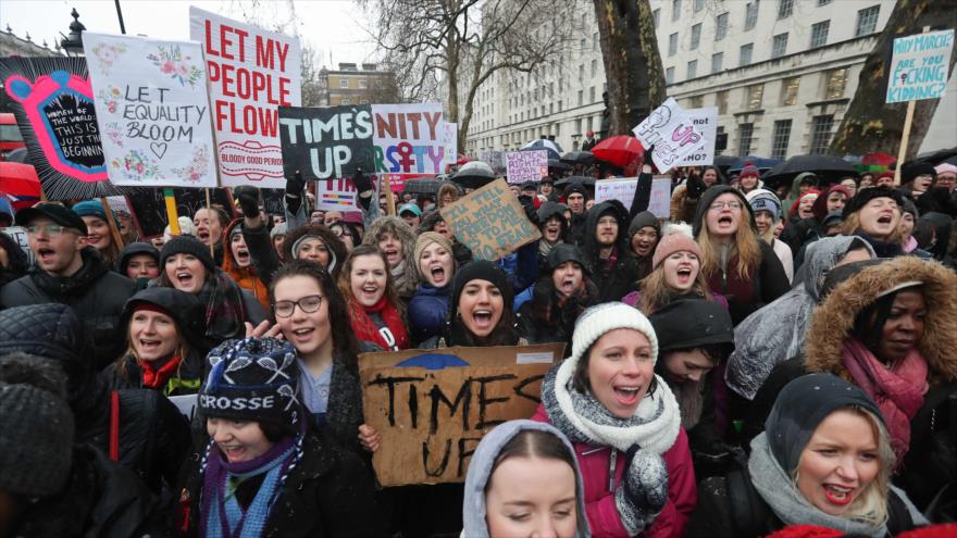 Las manifestantes de la capital británica se han concentrado por millares en la céntrica calle Downing Street ante la vivienda de la primera ministra, la conservadora Theresa May, donde han coreado en medio del frío y la lluvia eslóganes como “¡ya basta, ya basta!”.