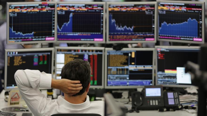 Los comerciantes de la empresa financiera ETX Capital trabajan en Londres (capital), mientras las acciones en bancos, aerolíneas y compañías de propiedad cayeron este lunes en la Bolsa de Londres. Como los inversores destacaron, estos tres sectores son los más afectados por la decisión británica de abandonar la Unión Europea (UE), 27 de junio de 2016.