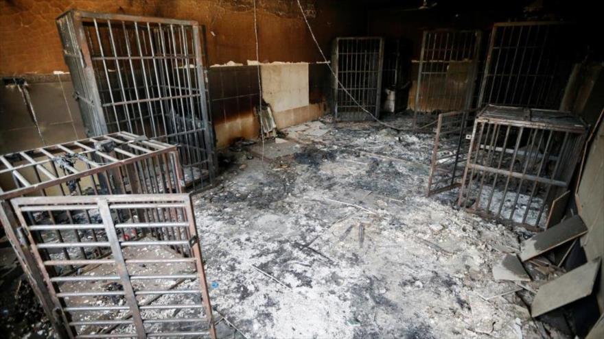 Celdas quemadas de la prisión del EIIL (Daesh) en la ciudad de Faluya, después de la liberación de la urbe por las fuerzas iraquíes, 27 de junio de 2016.