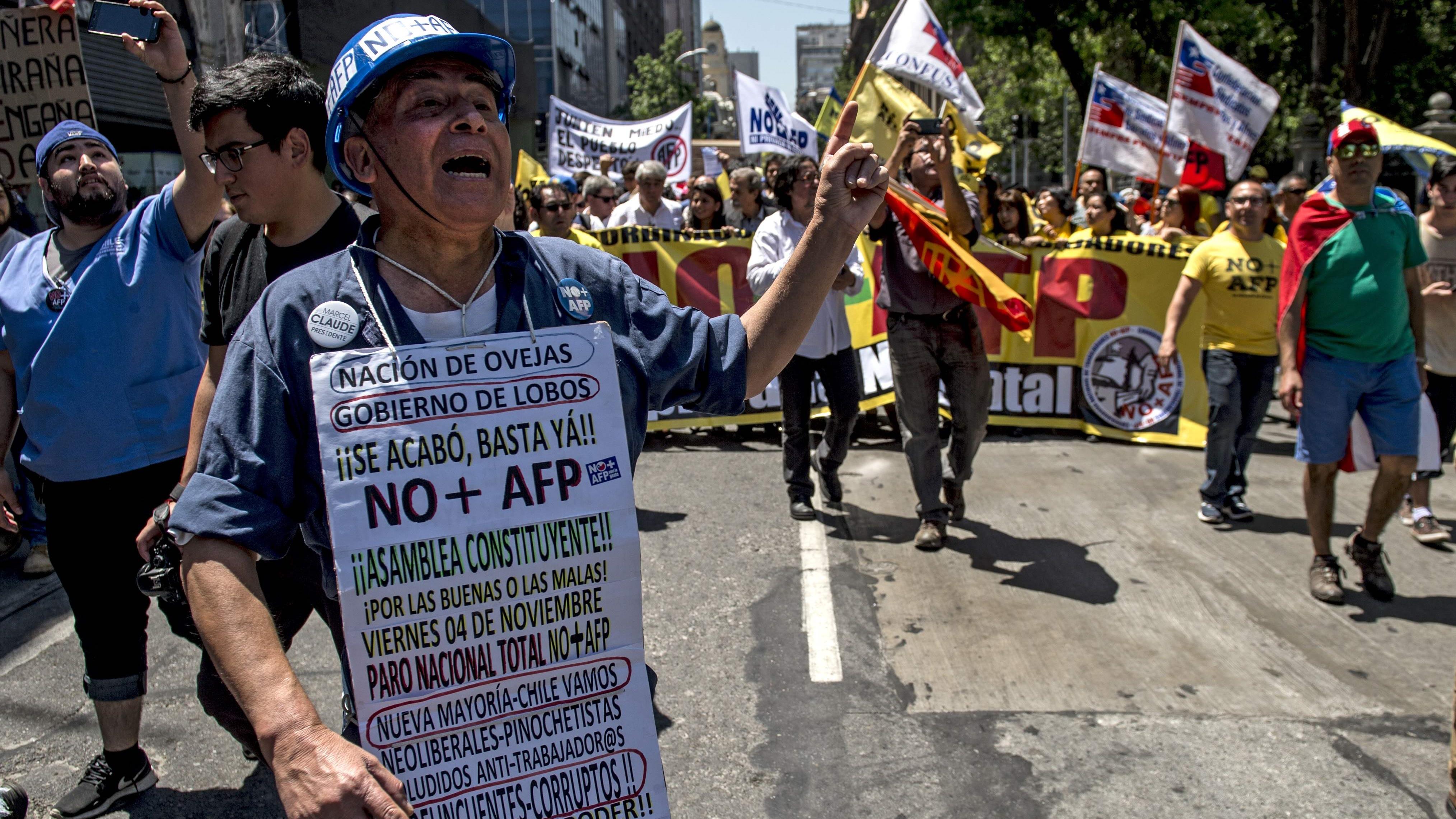 Lanzadas en 1981, las AFP han sido sostenidas por los políticos promercado y especialistas en todo el mundo como un modelo para privatizar un sistema nacional de pensiones, pero los opositores dicen que el sistema ha dejado a los 10 millones de chilenos inscritos en este sistema, pero con beneficios de jubilación extremadamente bajos.