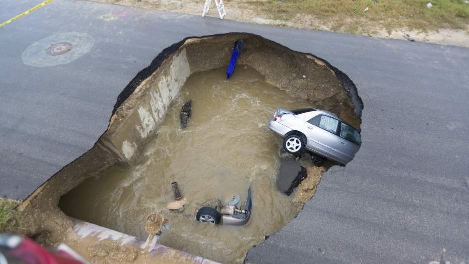 Los bomberos de la ciudad trabajaron varias horas para extraer los automóviles del enorme socavón, el cual, según las autoridades estadunidenses, tiene un diámetro que abarca el ancho de la carretera y al menos 3,6 metros de profundidad.