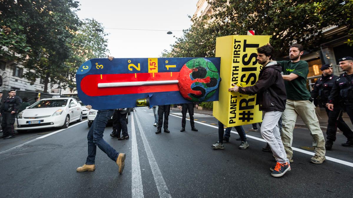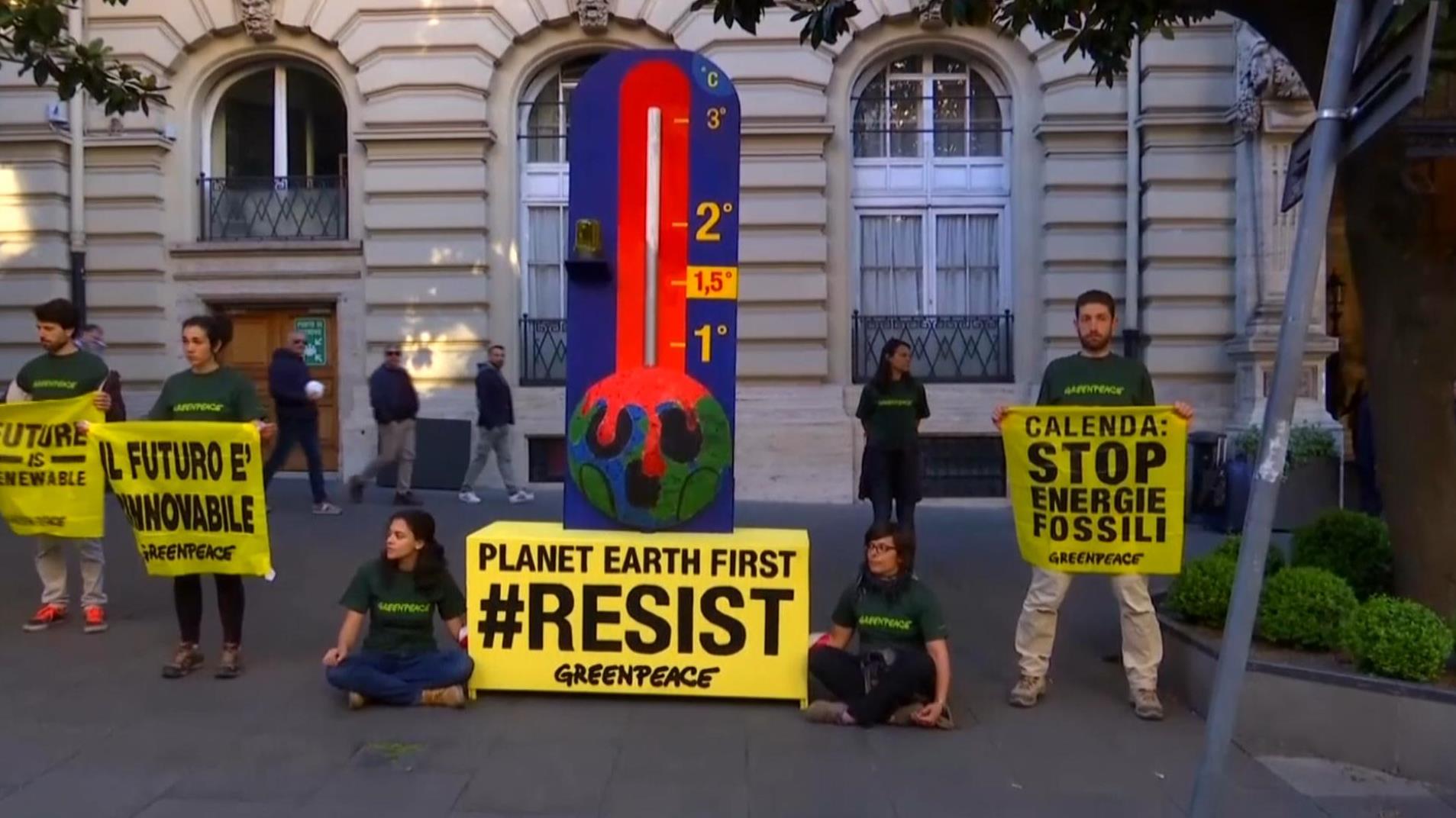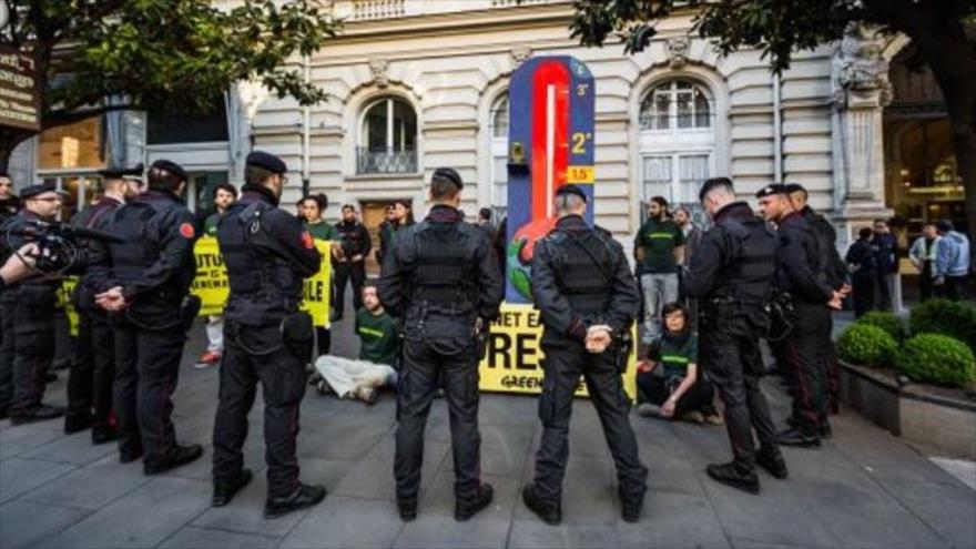 Los ambientalistas de la oenegé Greenpeace se han congregado en Roma, la capital de Italia, para exigir a los líderes de las siete potencias mundiales tomar decisiones serias ante el acuciante fenómeno climático.