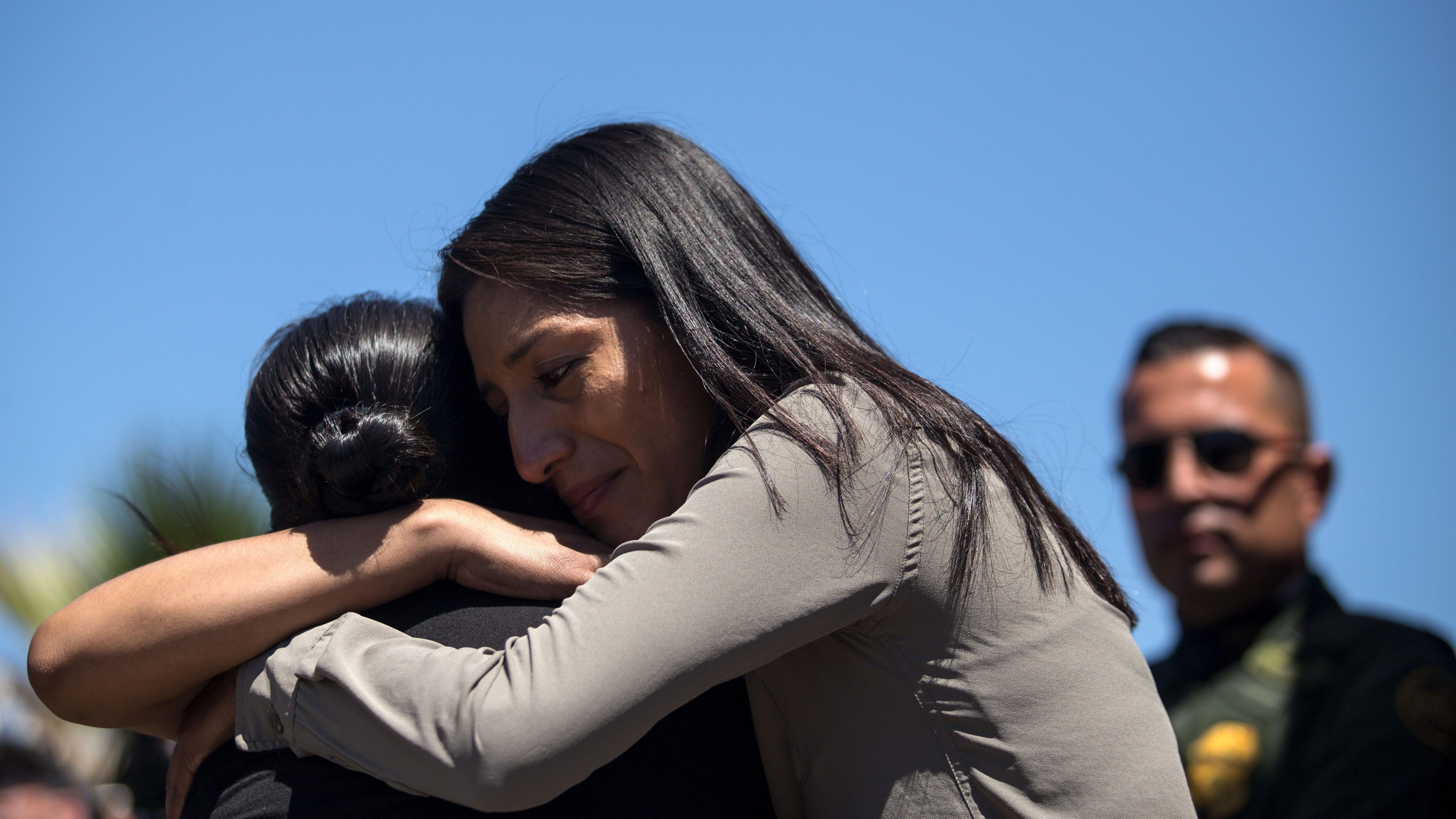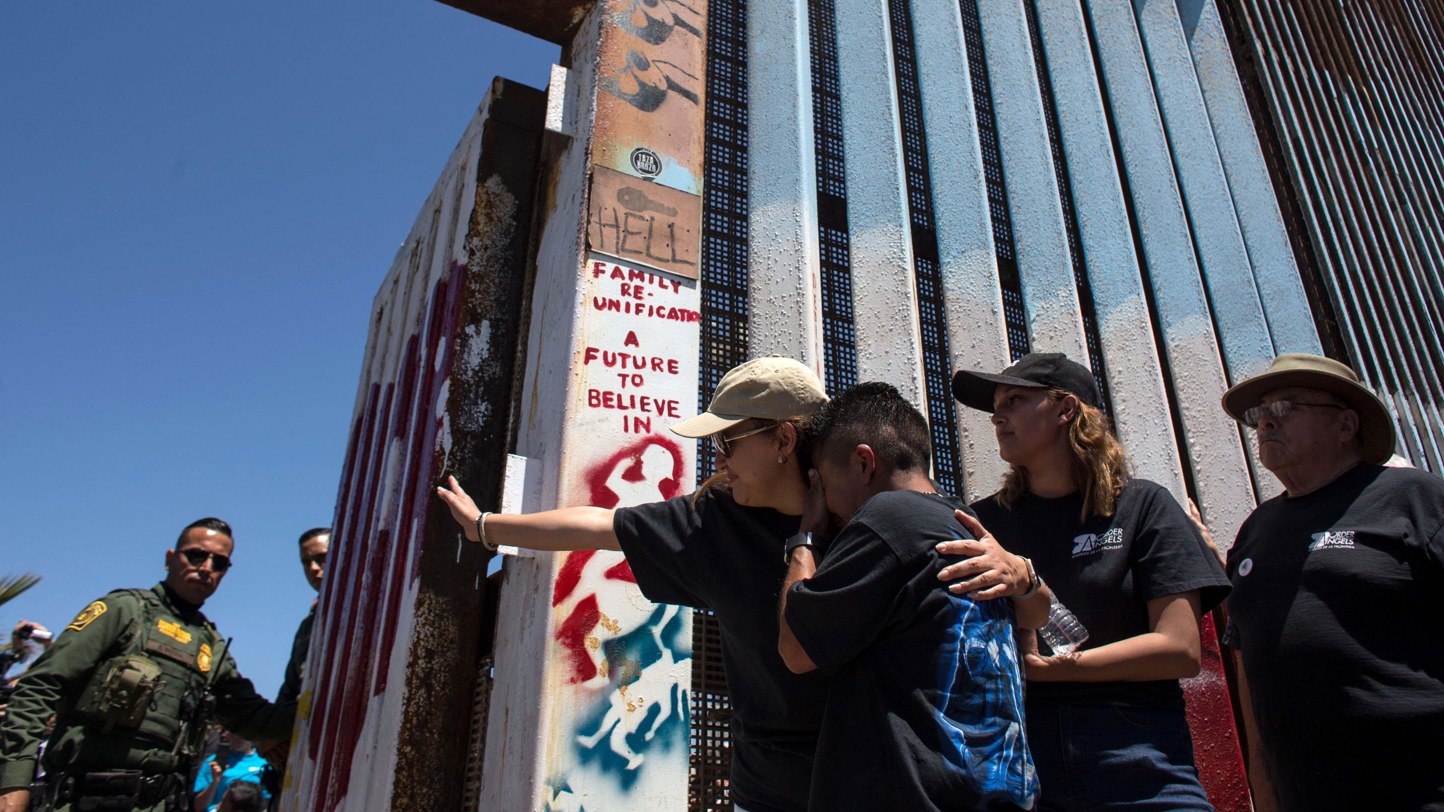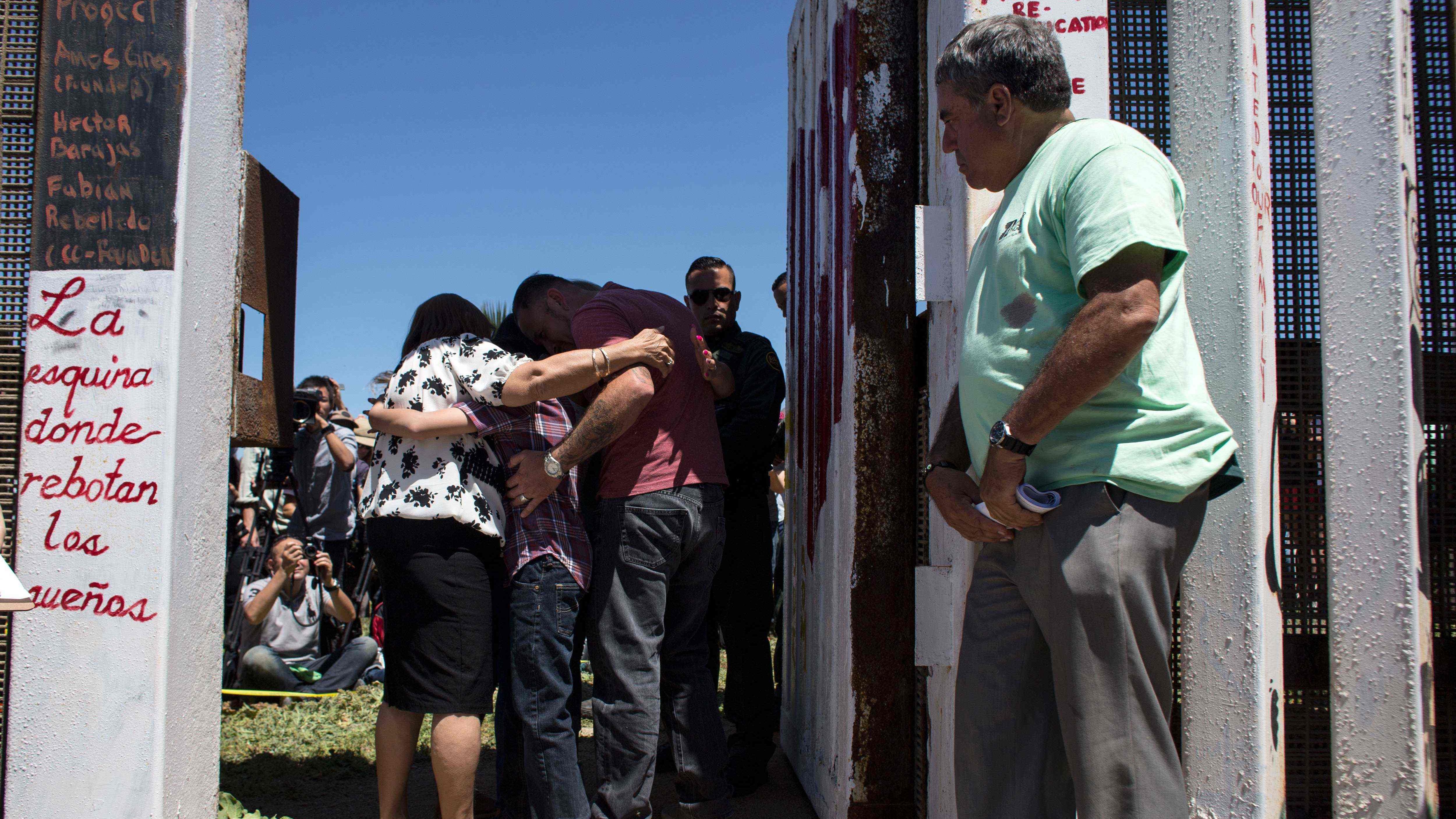 Con lágrimas en las mejillas y bajo la mirada de los guardias fronterizos, las familias abrazaron y besaron brevemente a sus seres queridos.