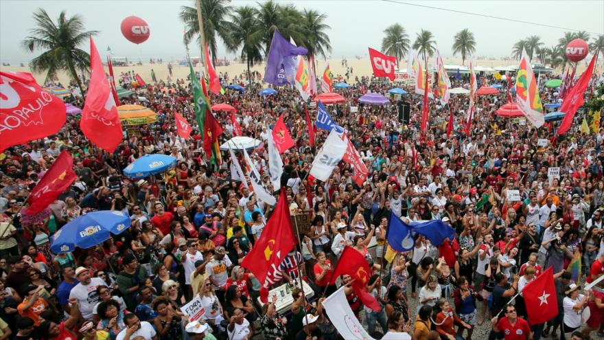 Movimientos sociales y los principales sindicatos brasileños convocaron a los indignados por las políticas del presidente a concentrarse en el paseo de la playa de Copacabana.