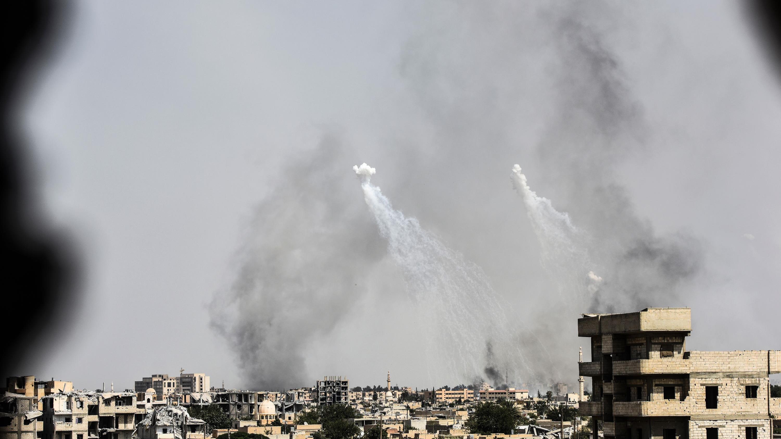 Las imágenes publicadas muestran los ataques con fósforo blanco lanzado por la coalición en la ciudad de Al-Raqa, bastión del grupo terrorista EIIL (Daesh, en árabe), en el norte de Siria. El derecho internacional humanitario prohíbe el uso de fósforo blanco cerca de población civil.