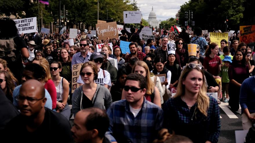 La protesta se produce en un momento de renovadas tensiones raciales en EE.UU., después de los disturbios de Charlottesville, en Virginia, en agosto del año en curso, cuando un supremacista blanco embistió con un vehículo a un grupo de manifestantes antifascistas.