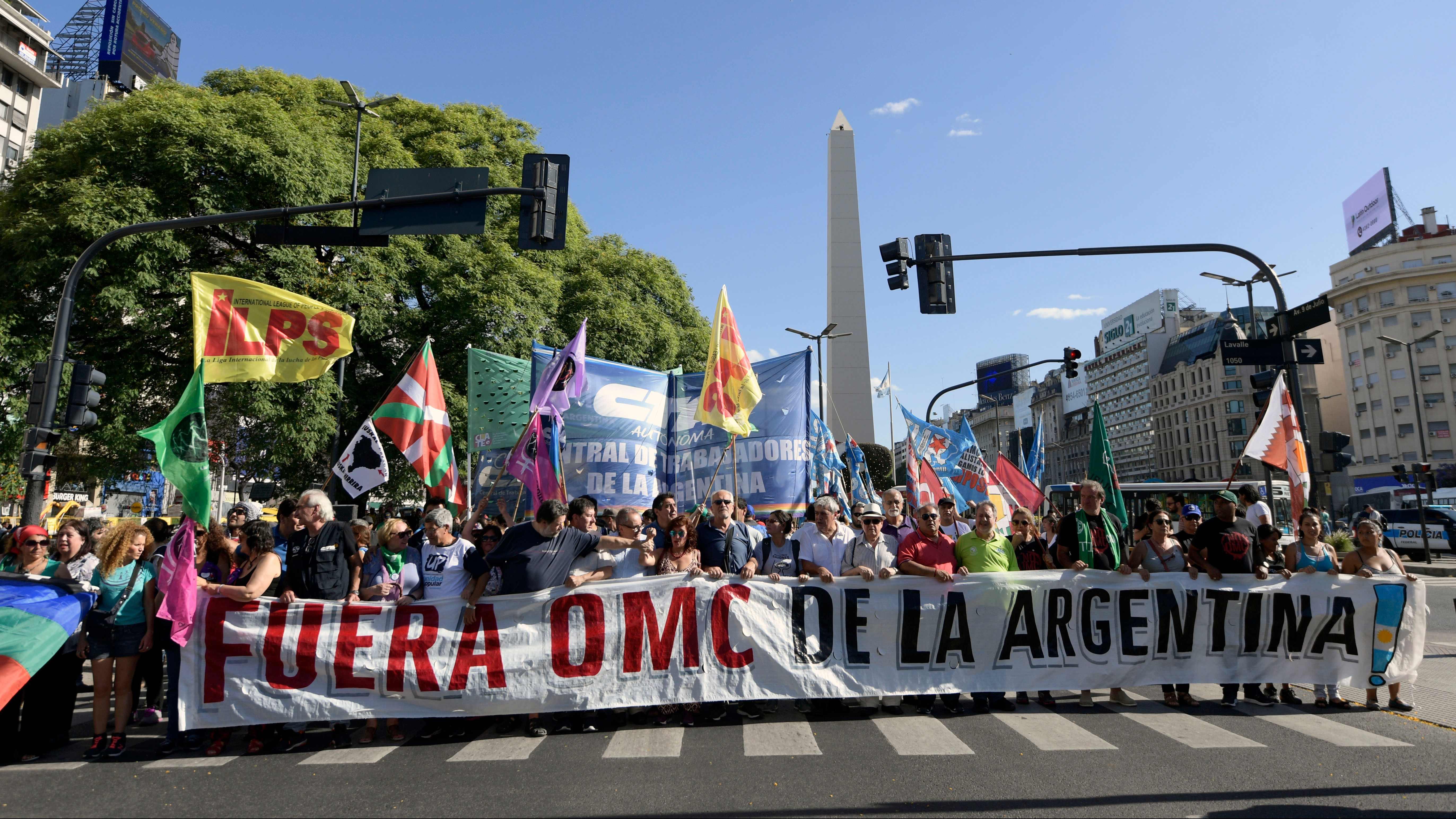 Varias organizaciones sociales y políticas se manifestaron pacíficamente en “repudio” a la cumbre de la OMC, frente a un despliegue gigante de Gendarmería.