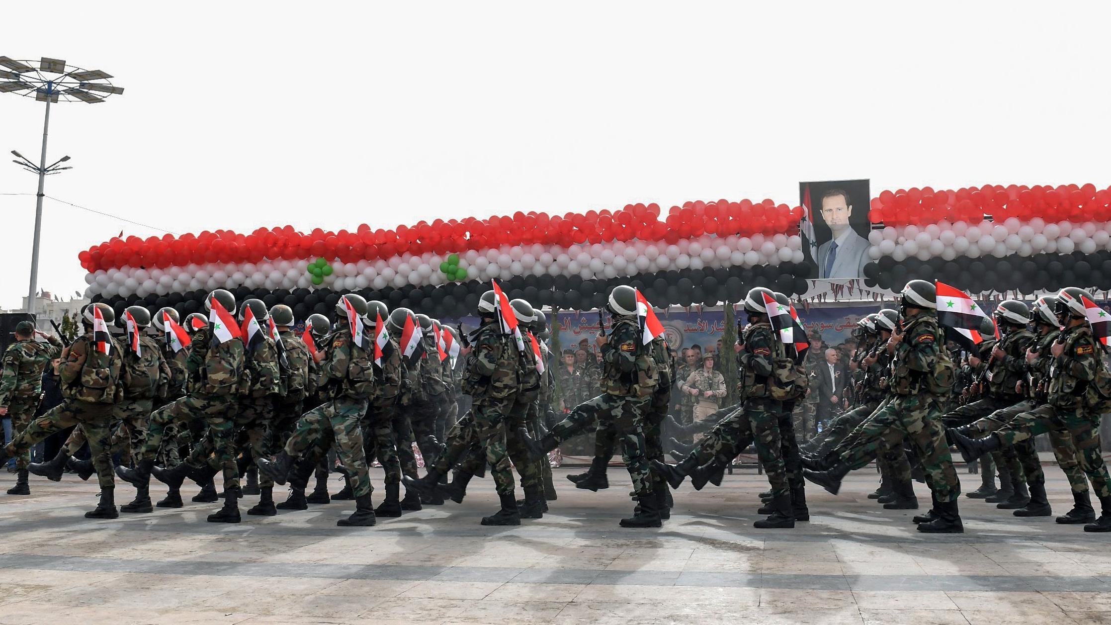 Además de la celebración civil, los soldados del Ejército sirio han realizado un desfile militar para conmemorar sus esfuerzos por recuperar la ciudad de los grupos terroristas.