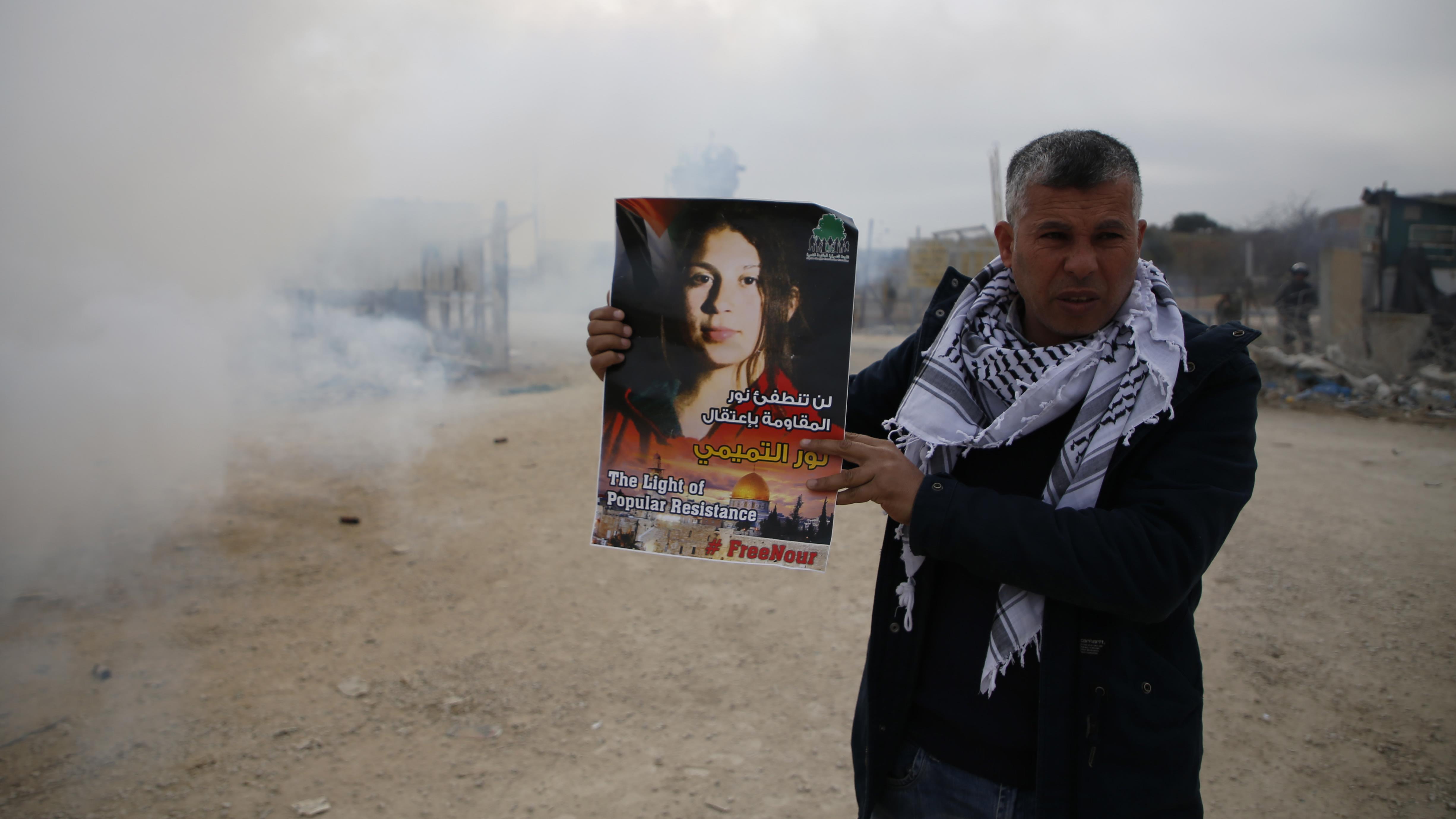 El 15 de diciembre, Ahed aparece empujando, abofeteando y pateando a soldados israelíes, después de que ellos dispararon a su primo de 15 años, hiriéndole en la cara con una pelota de goma.