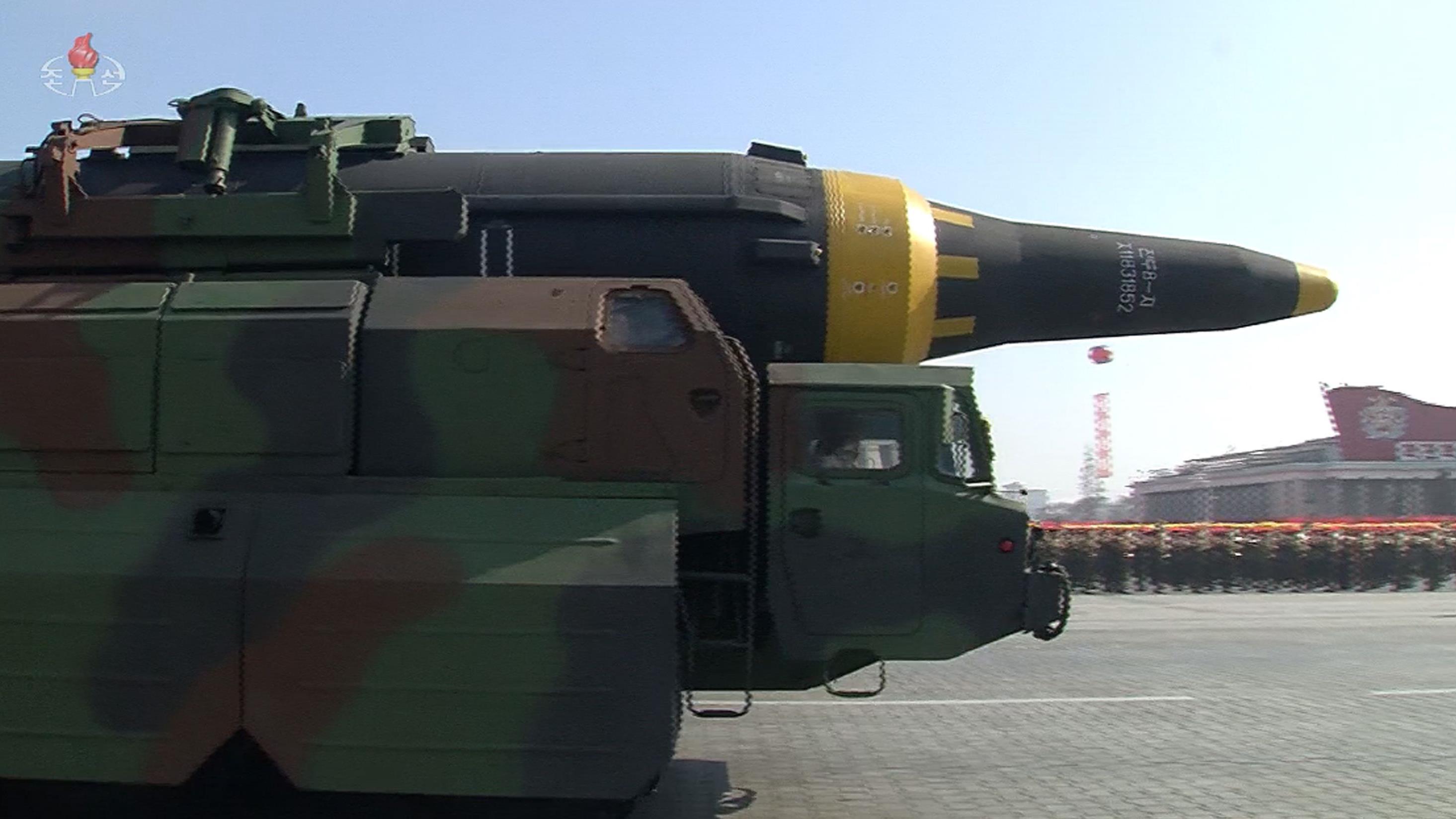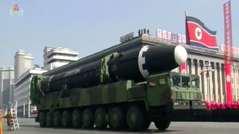 Paralelamente, el jueves en la capital norcoreana desfilaron regimientos enteros de soldados, seguidos de camiones, artillería, tanque y finalmente misiles gigantes.