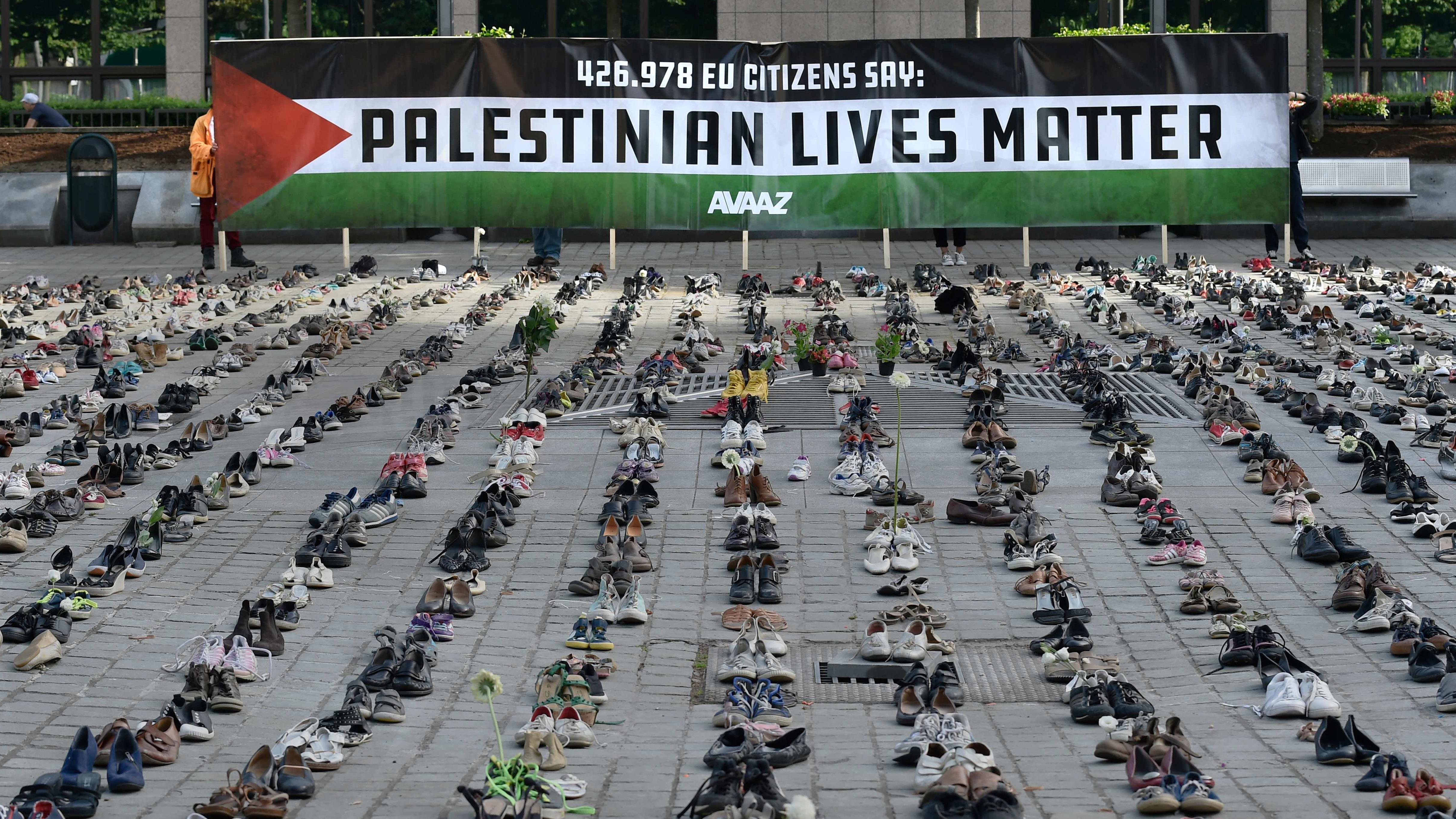 Según el director de la campaña, Christoph Schott, los zapatos fueron donados por ciudadanos de toda Europa para demostrar a los líderes que es su responsabilidad moral enviar una señal al régimen de Israel para que cese la violencia.