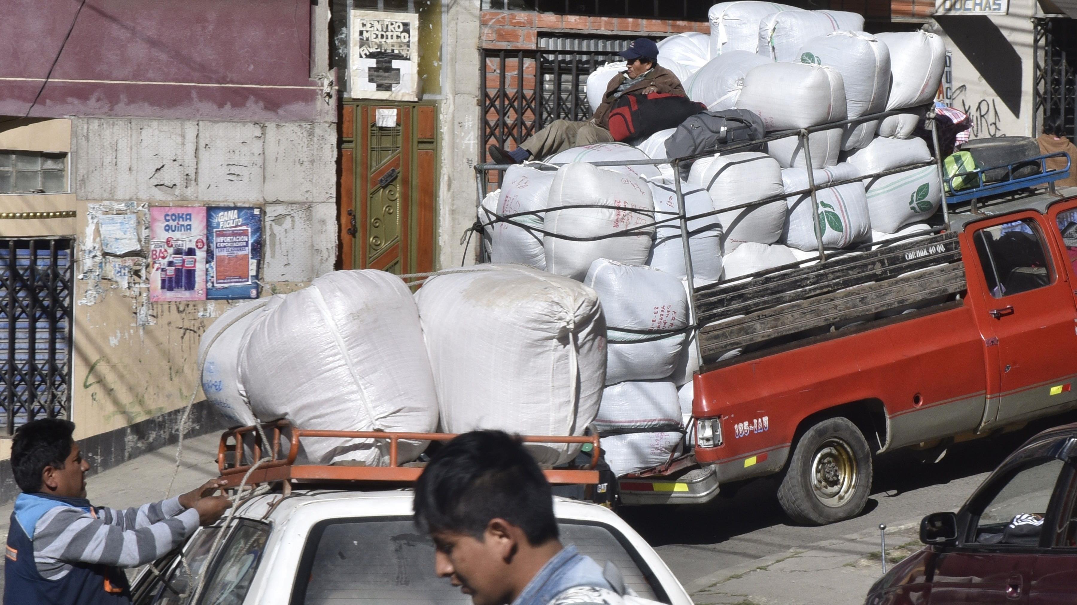 El 91 % de la hoja de coca autorizada para venta legal en Bolivia se comercializa en el mercado de Villa Fátima, situado en una pendiente ladera de La Paz.