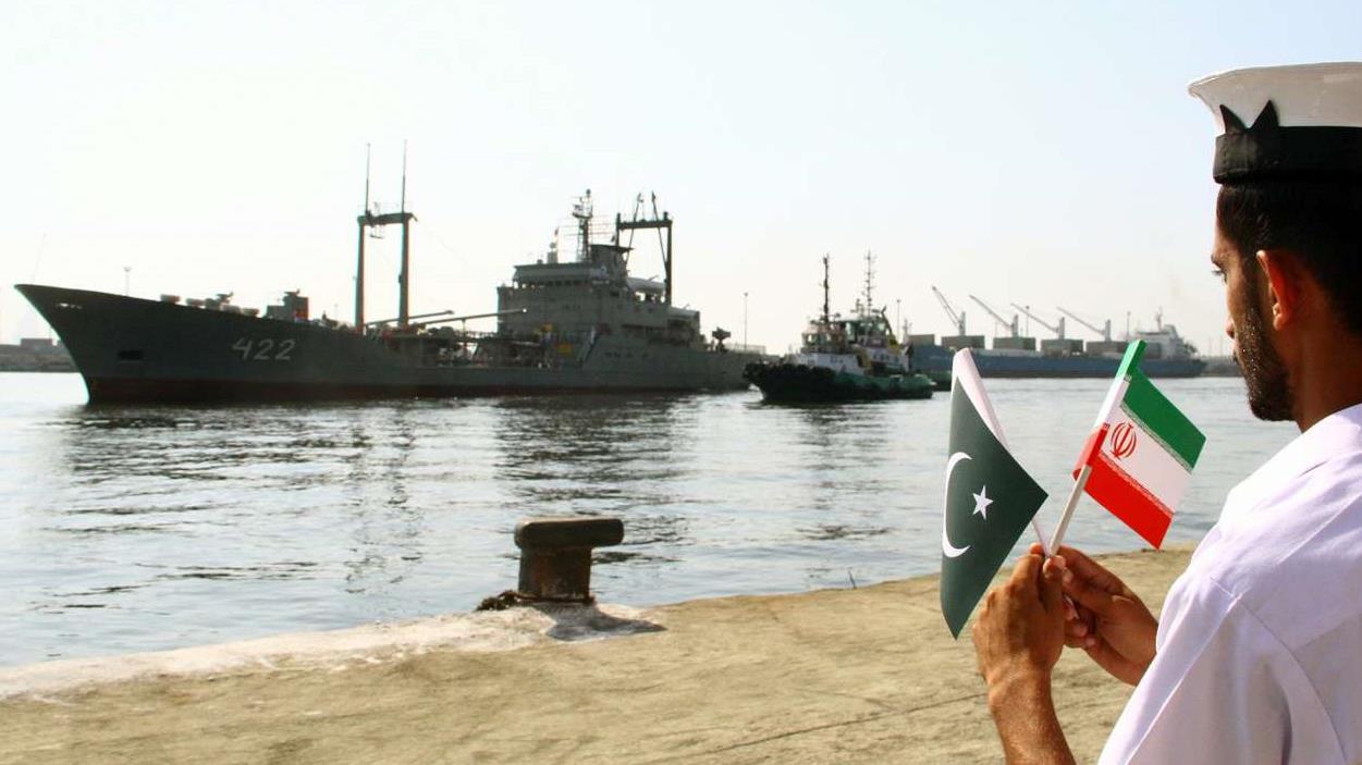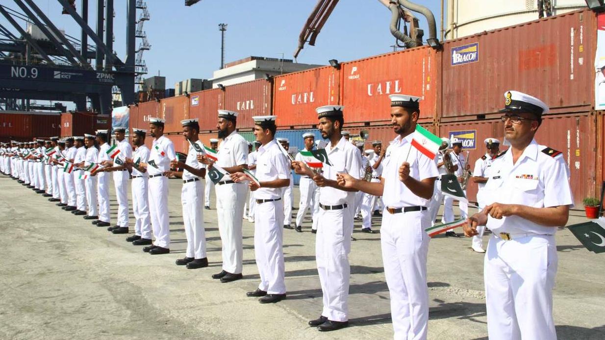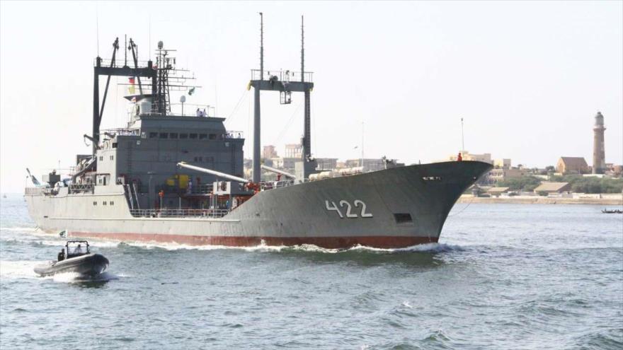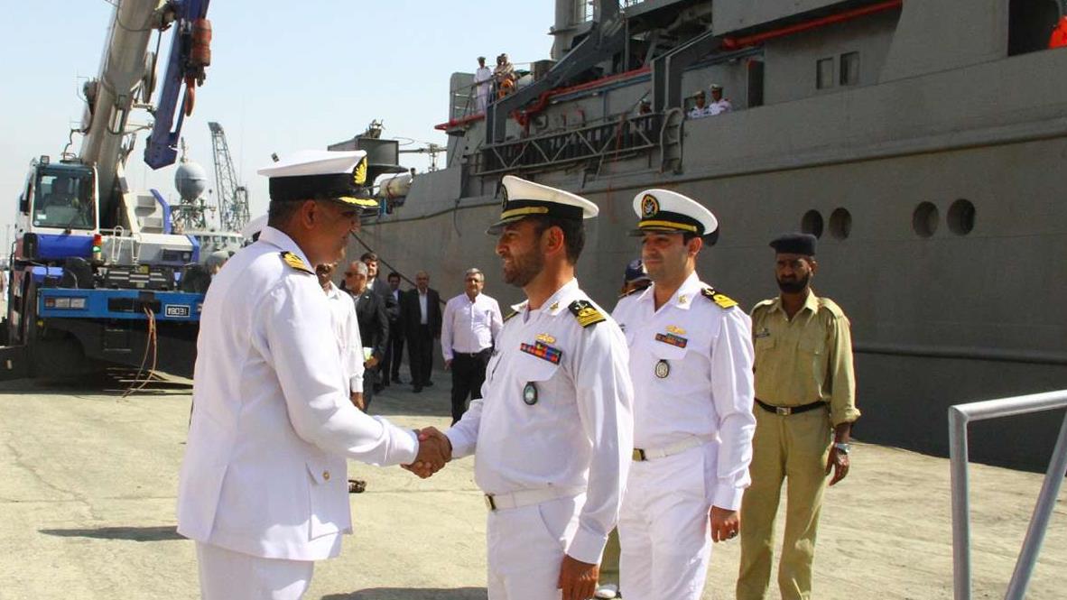 Los altos oficiales de la Marina de Paquistán dieron la bienvenida a la flotilla iraní, incluyendo los barcos de la armada “Neza”, “Janjar” y “Bushehr”.