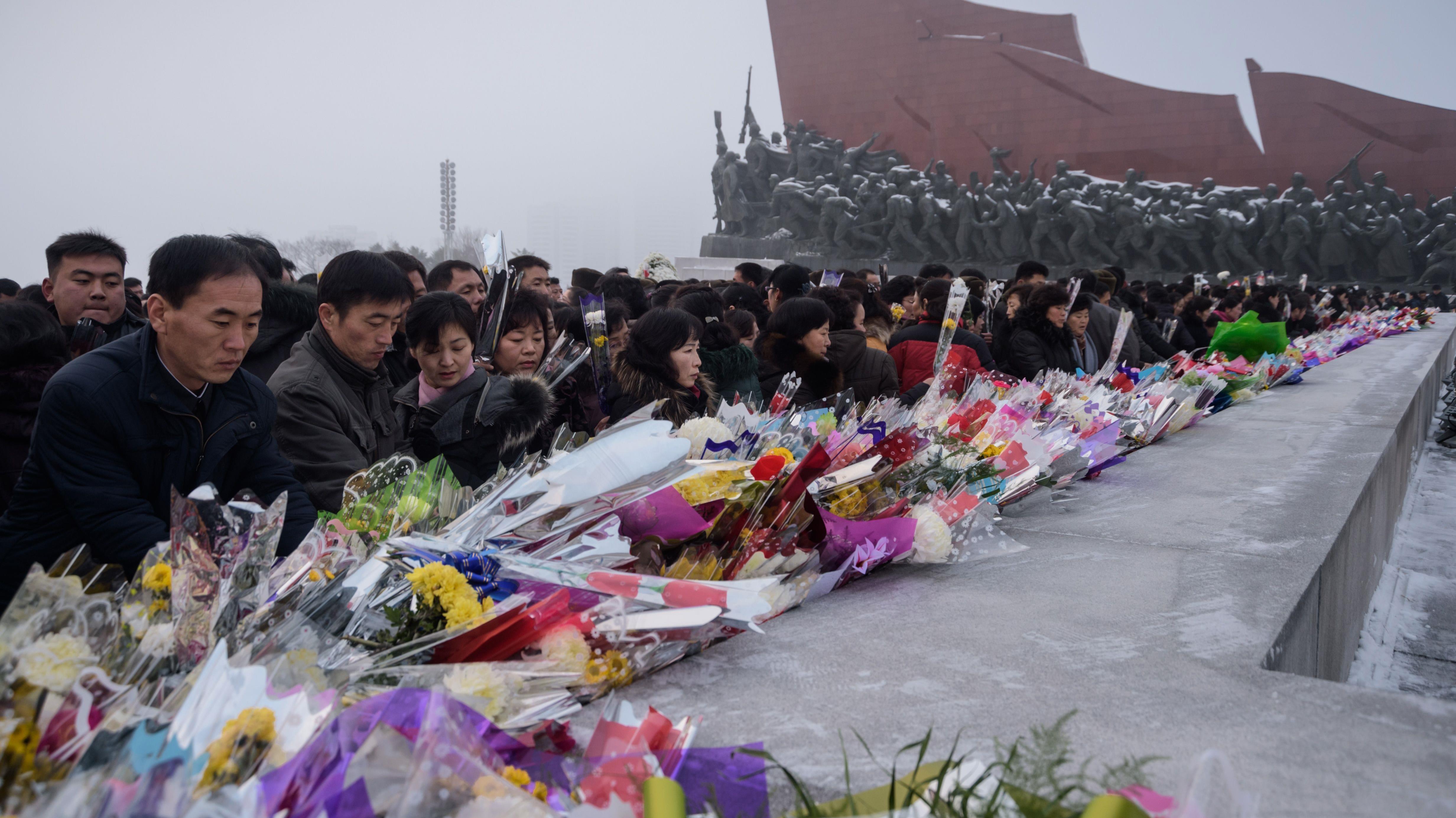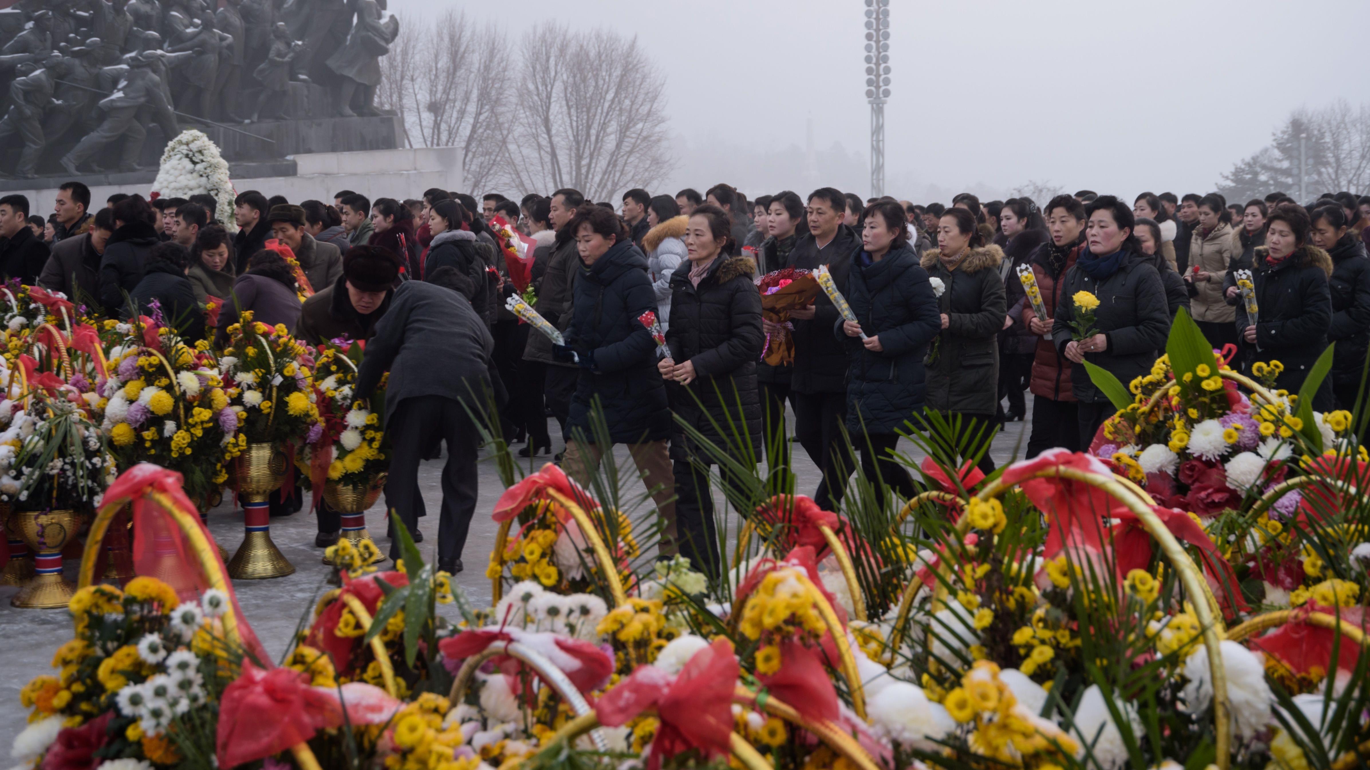Decenas de miles de personas han realizado una ofrenda floral y presentado sus respetos al fallecido líder norcoreano en Mansu Hill, en el centro de la capital Pyongyang, donde se ubican las estatuas de bronce de Kim Il-sung, fundador de la nación.