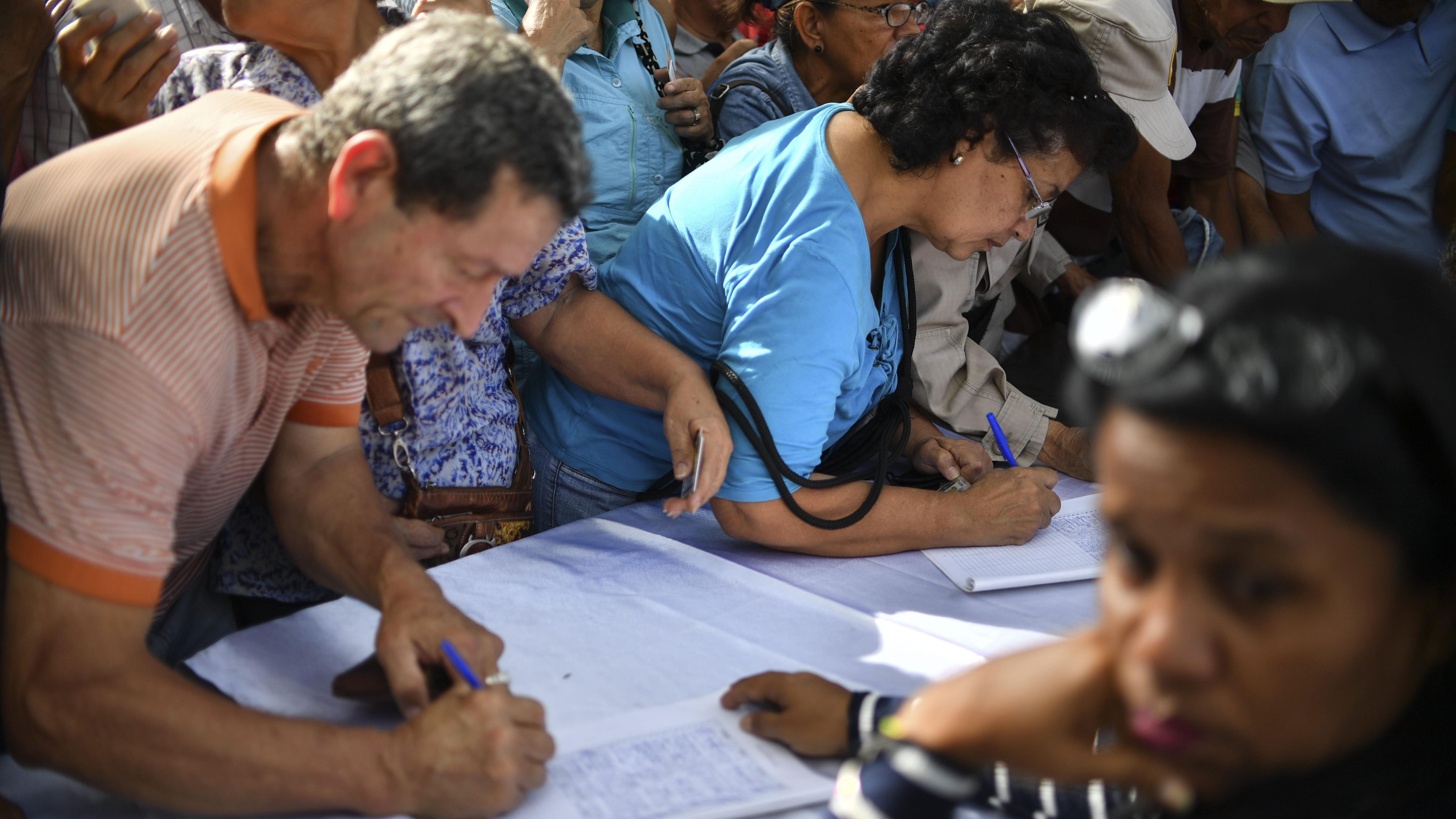 Los venezolanos reunidos en la Plaza Bolívar de Caracas (la capital venezolana) para depositar su rúbrica, denunciaron los planes golpistas de EE.UU. para derrocar al Gobierno legítimo del presidente venezolano, Nicolás Maduro.