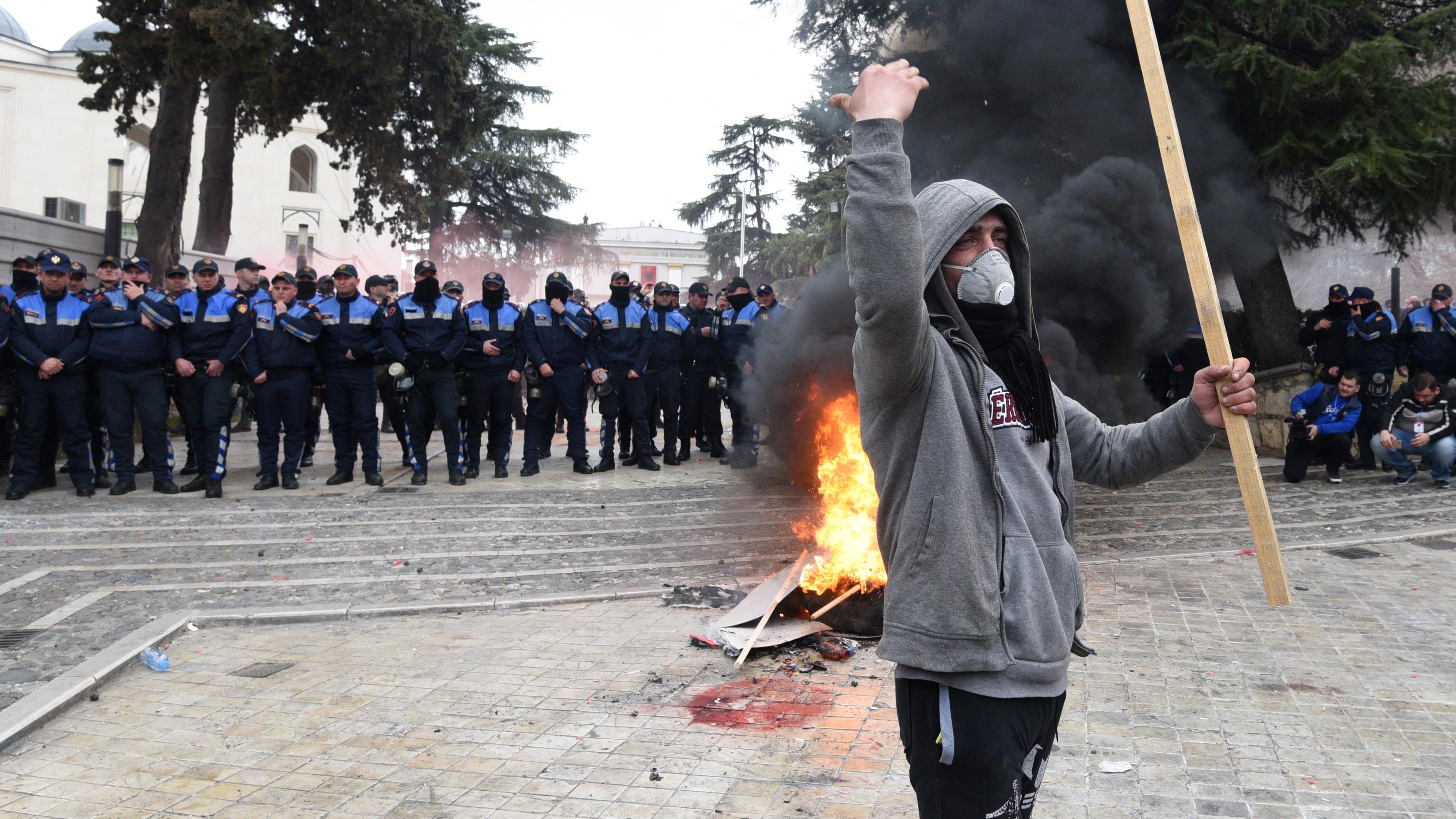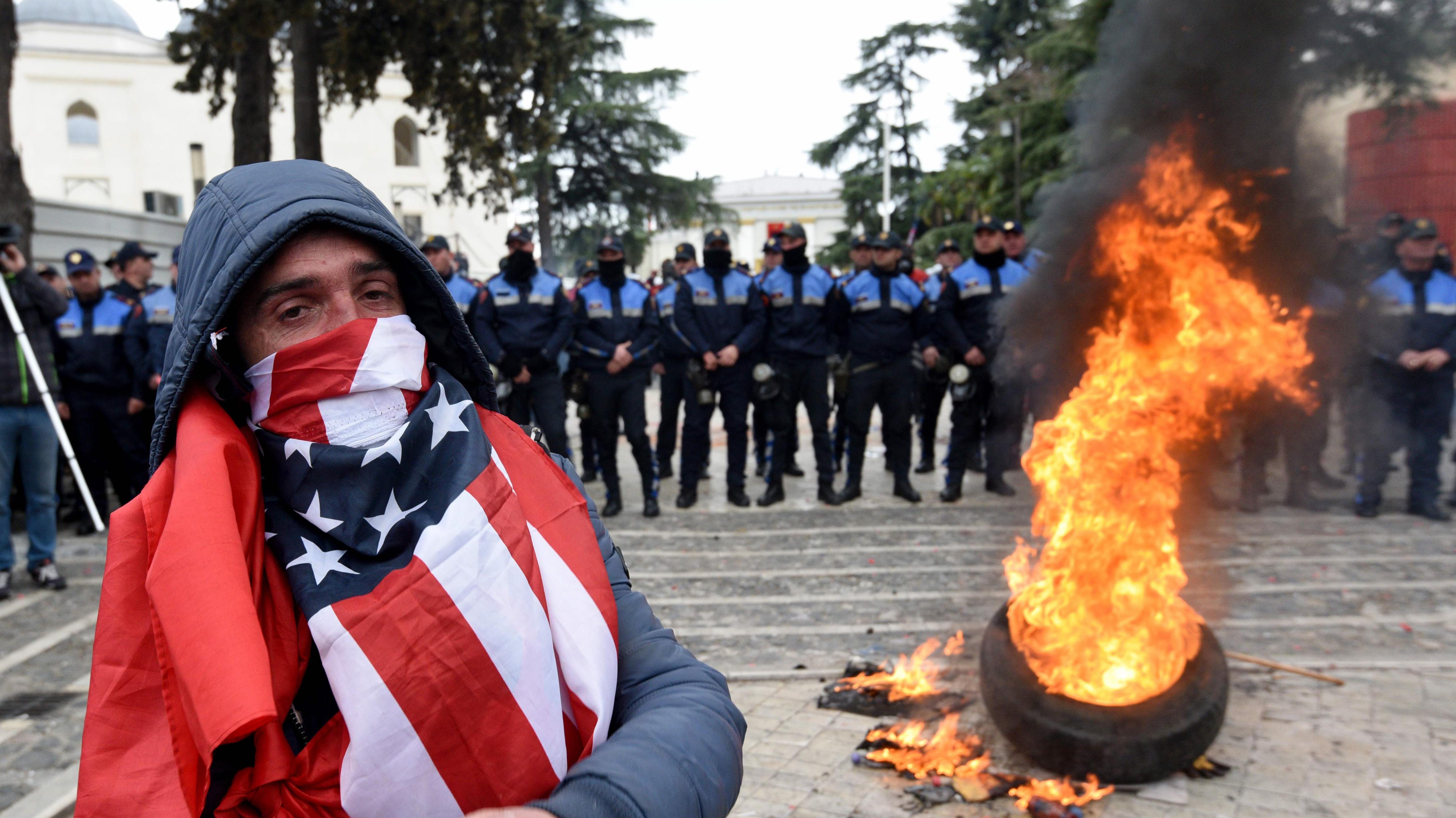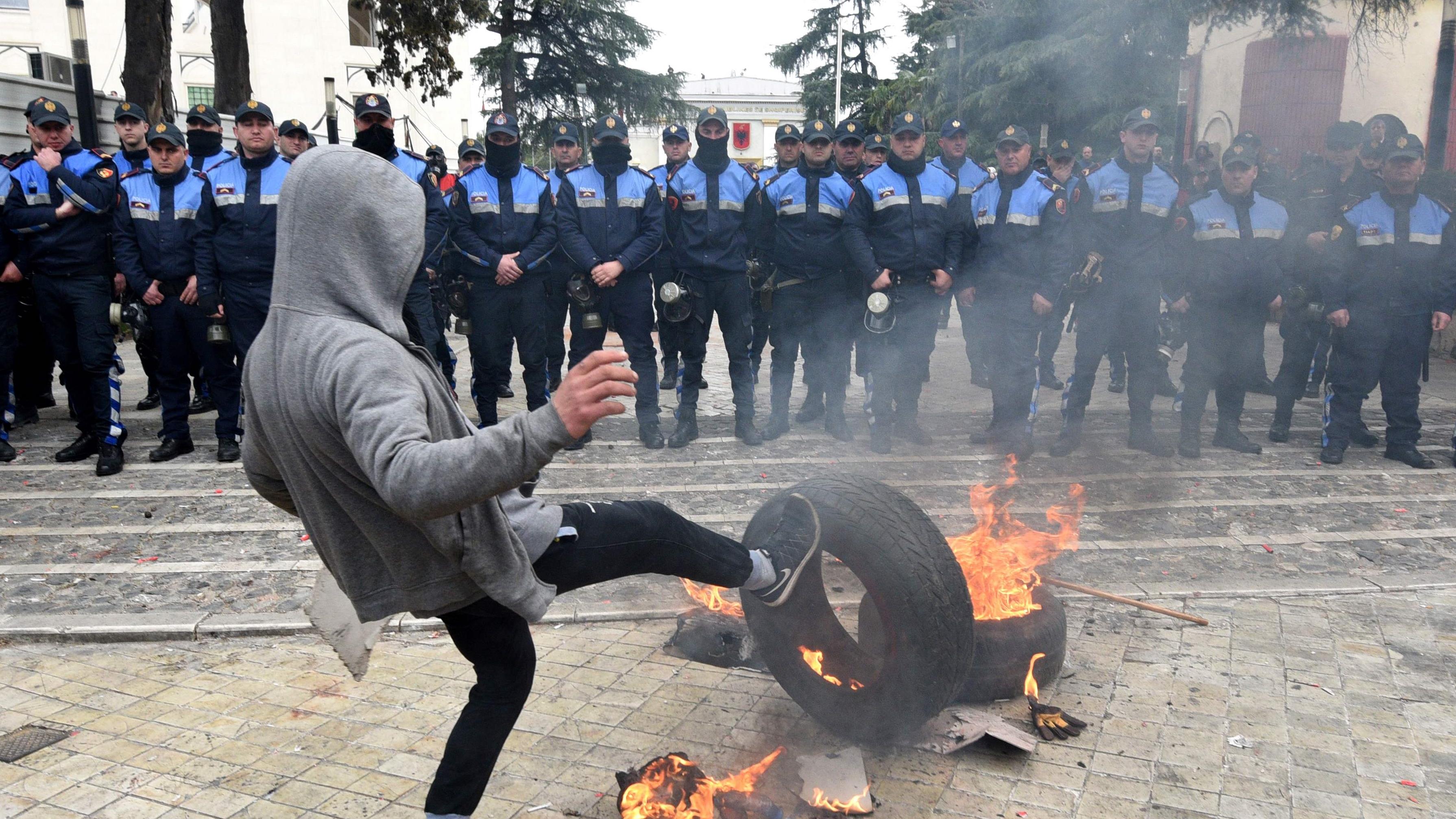 En Tirana, la capital albanesa, la protesta antigubernamental de los partidarios de la oposición terminó en violencia. Los manifestantes quemaron neumáticos y arrojaron objetos mientras la policía respondía con gases lacrimógenos.