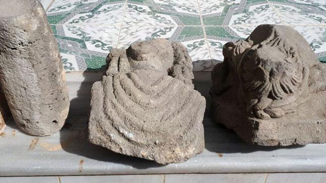 El jefe del Departamento de Antigüedades del Campo de Damasco, Yihad Abu Kahiela, indicó que entre los objetos incautados había esculturas de piedra de basalto que representan a diosas, y dinteles de piedra, que en su mayoría datan de la época romana del siglo II d.C.