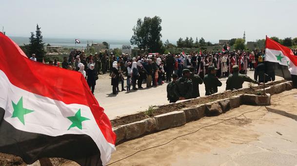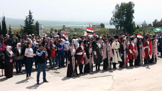 A pocos metros de la alambrada con el Golán ocupado celebraron un mitin, y los manifestantes sirios aseguraron que los altos de Golán siguen siendo de Siria.