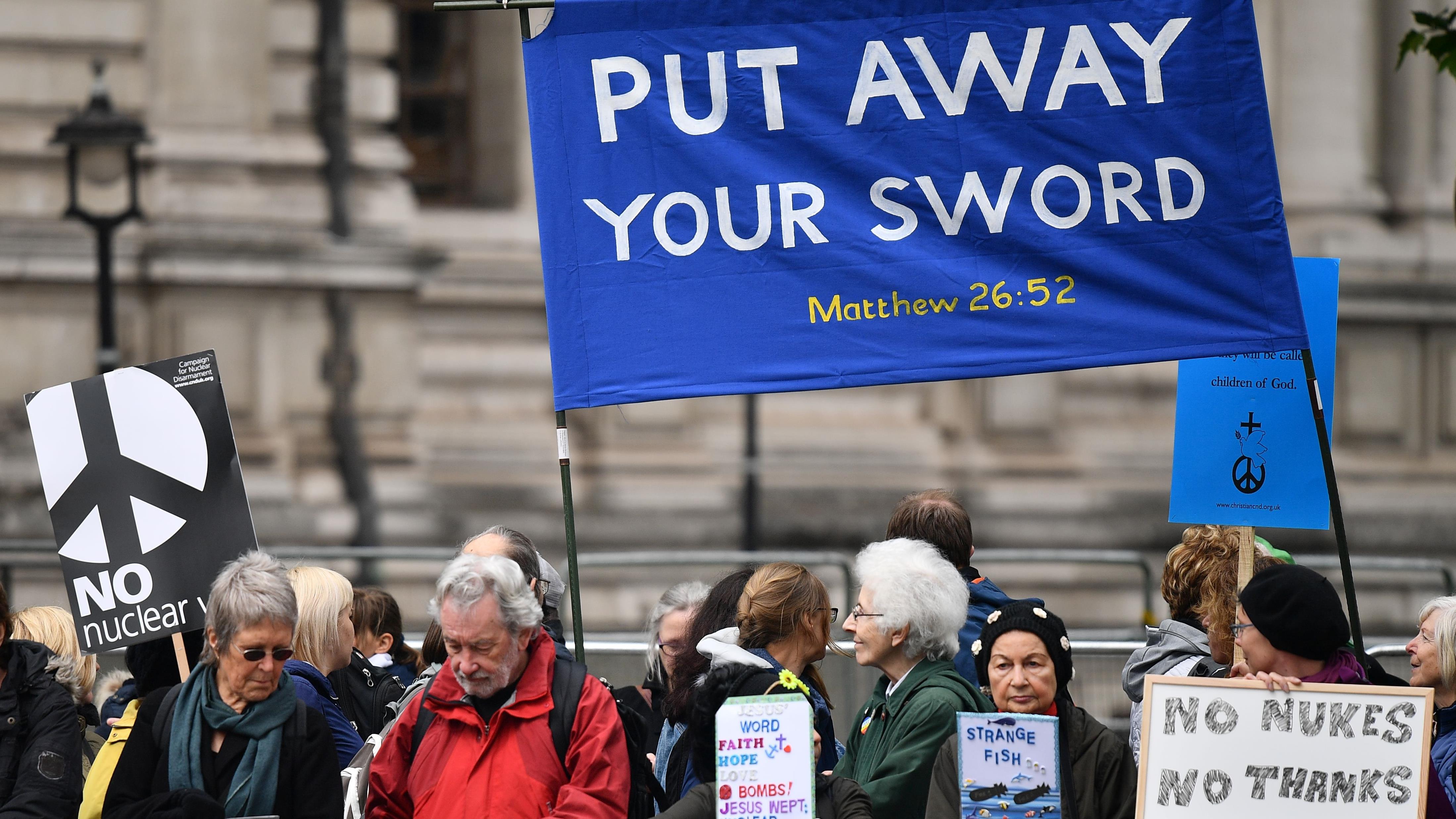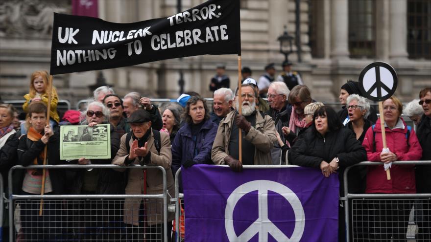 La acción de protesta de este viernes en la capital del Reino Unido se llevó a cabo mientras que la realeza, los políticos y los jefes militares se encontraban reunidos en dicha abadía para conmemorar el 50.º aniversario del programa británico de armas nucleares en el mar.