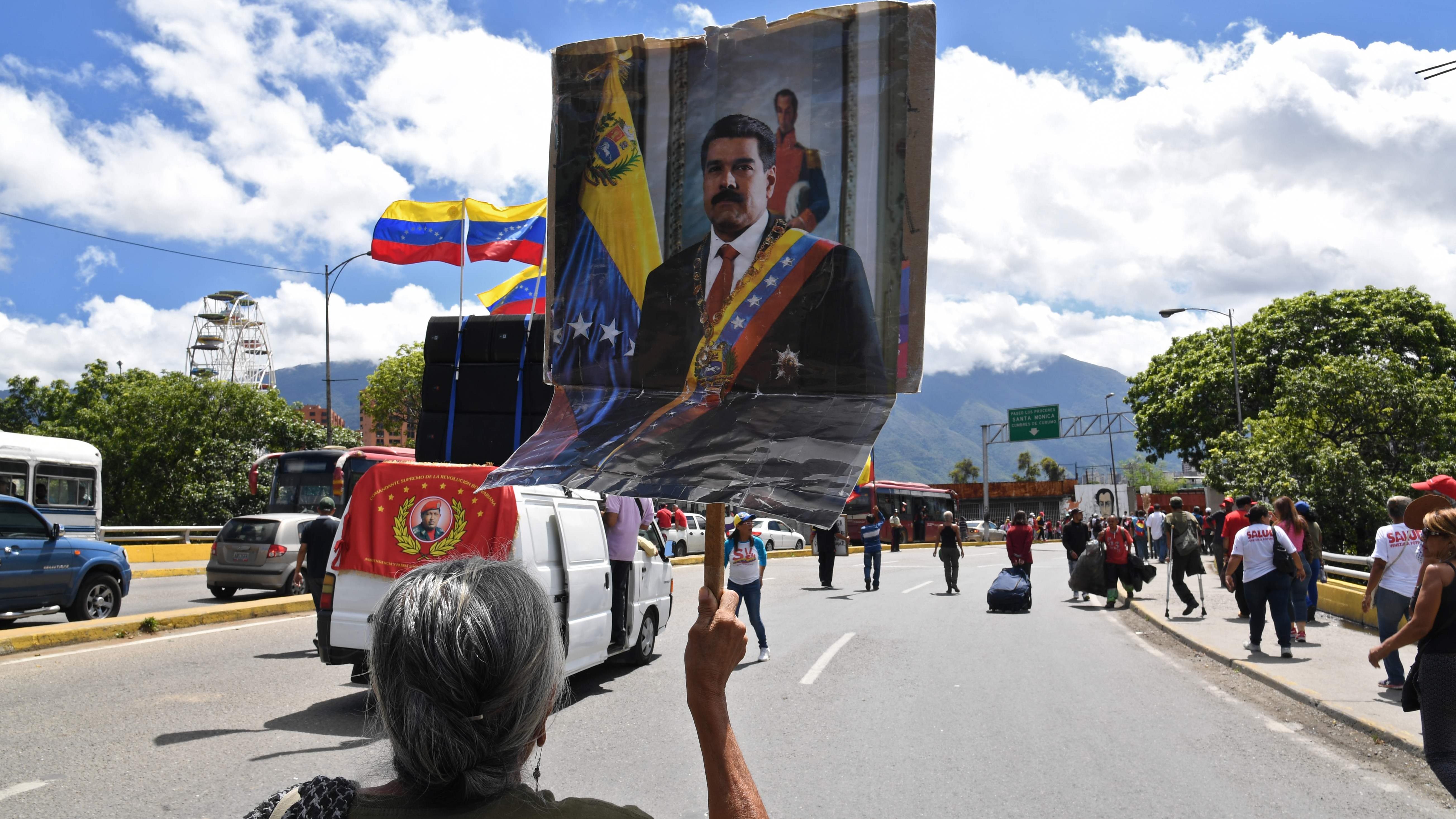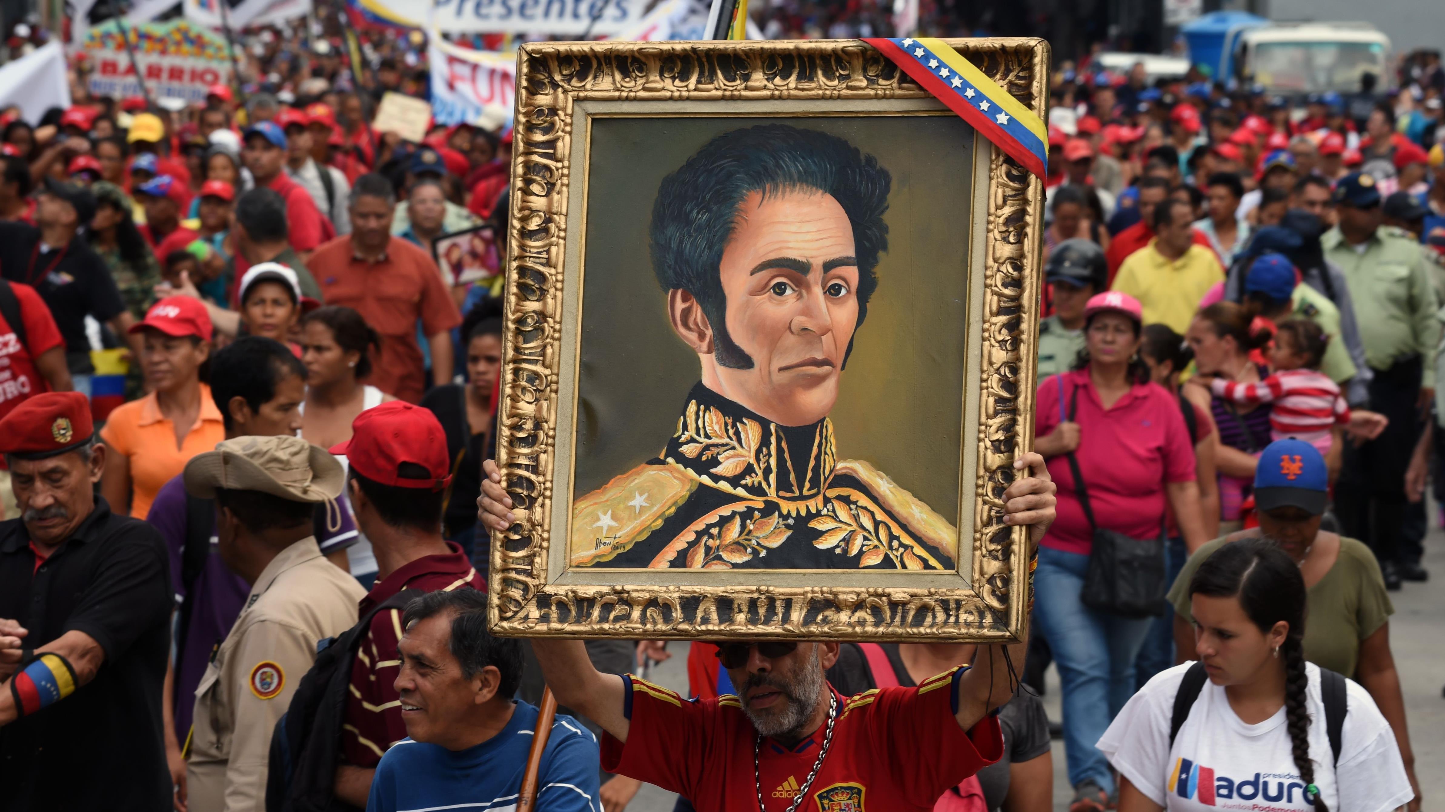 Las imágenes muestran a los chavistas vestidos de rojo y portando banderas nacionales, así como retratos del libertador Simón Bolívar en su recorrido por la capital.