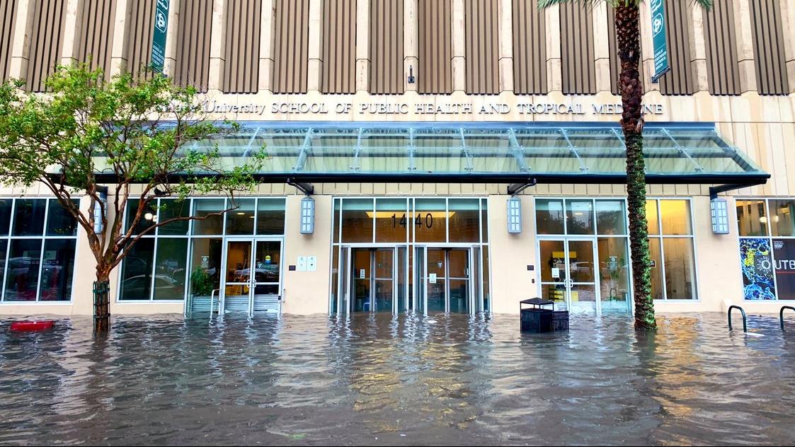 El Servicio Meteorológico Nacional emitió una emergencia por inundación repentina para la ciudad de Nueva Orleans. El huracán cortó las vías de tránsito de las ciudades y provocó atascos.