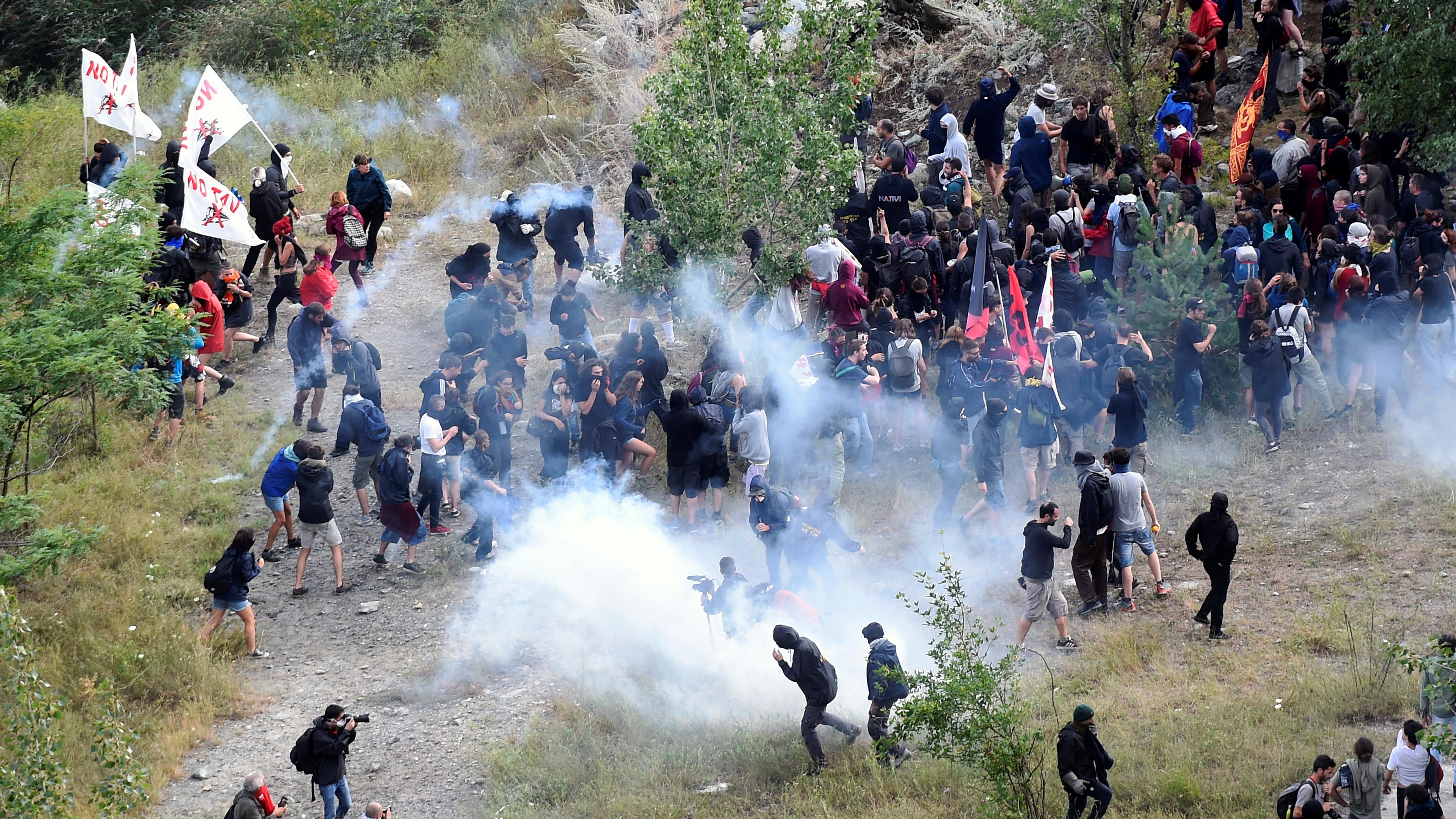 Es la enésima movilización de un colectivo que considera faraónico tanto el coste como la envergadura de unas obras de dudosa rentabilidad. Muchos de los habitantes de la zona reclaman un modelo de desarrollo sostenible para estos valles alpinos, por otra parte, los agentes de la Policía han dispersado a los manifestantes con gases lacrimógenos.