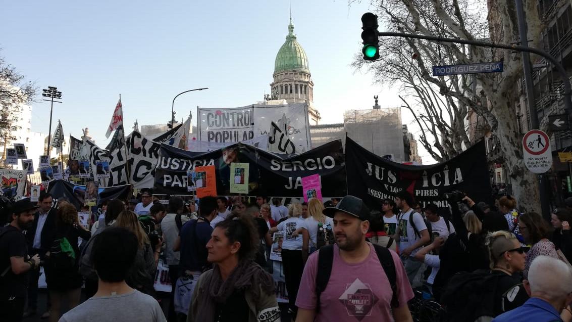 La “Marcha Nacional Contra el Gatillo Fácil” fue organizada por la Coordinadora Contra la Represión Policial e Institucional (Correpi) para condenar política represiva del Gobierno de Mauricio Macri que aboga por el uso desmedido de las armas de fuego por parte de las fuerzas de seguridad.