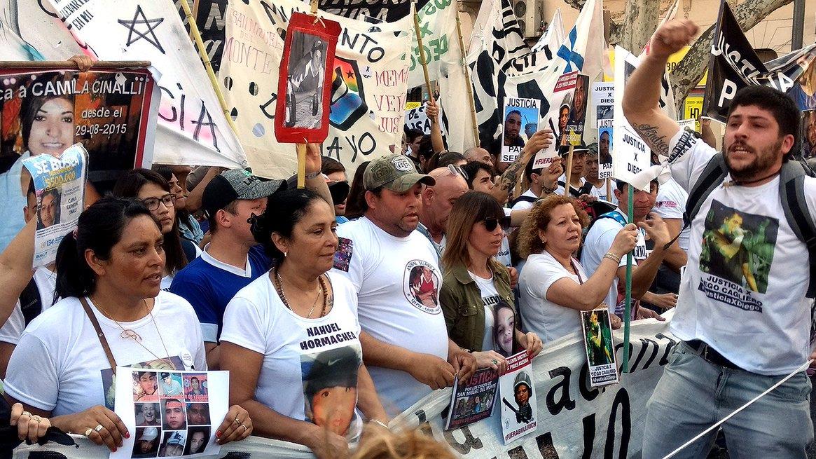Bajo la consigna “ni un pibe menos, ni una bala policial más”, los manifestantes en varias provincias de Argentina denunciaron que desde que asumió la actual gestión del presidente Mauricio Macri, en diciembre de 2015, y hasta el 12 de febrero se contabilizaron 1303 casos de gatillo fácil.