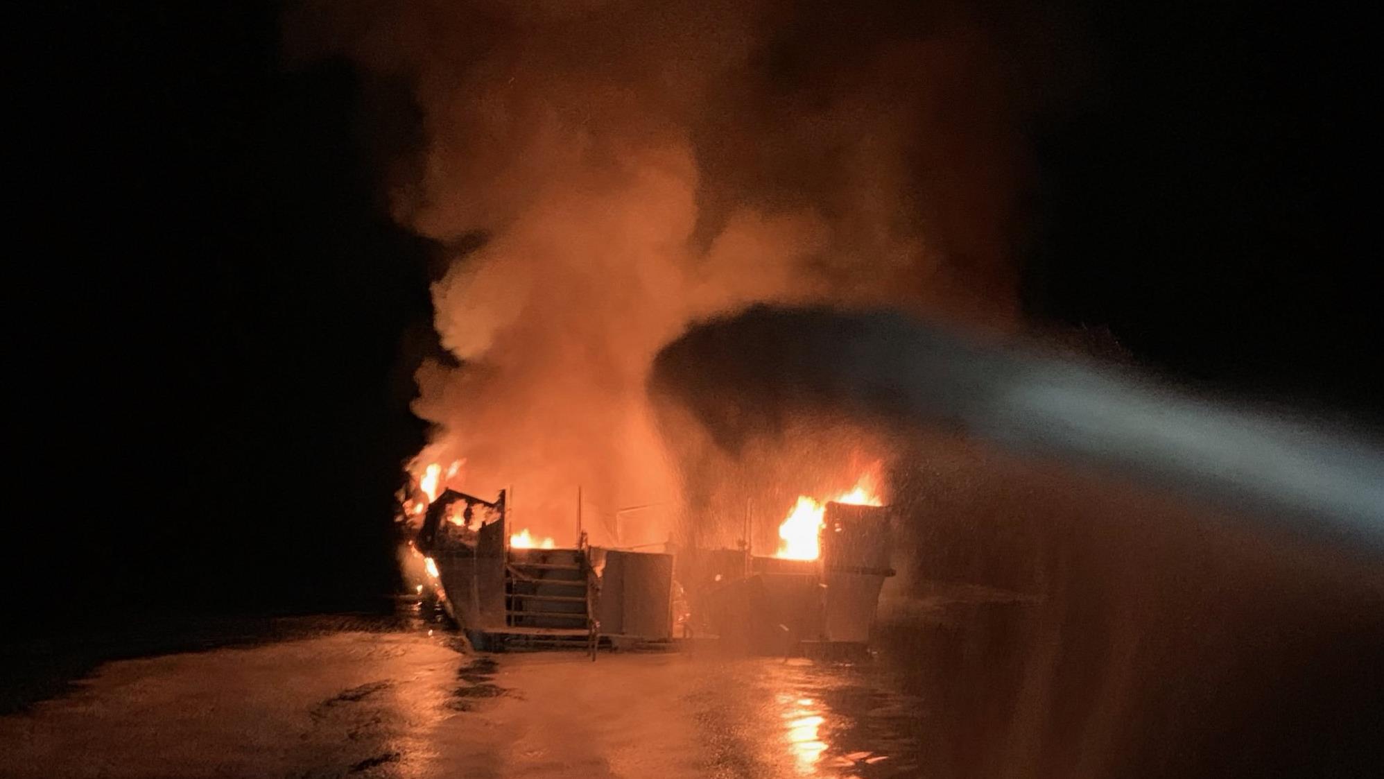 La Guardia Costera de EE.UU. ha iniciado múltiples operativos de rescate junto a otras unidades de emergencia para rescatar a más de 30 personas tras el incendio de un barco cerca de la Isla Santa Cruz (California).